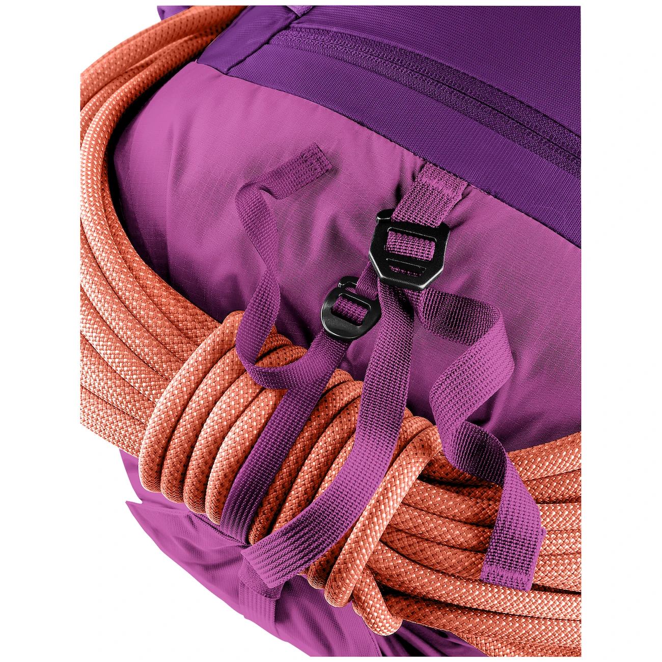 Leichter klimaneutraler und PFC-freier Kletterrucksack Deuter Guide 28 SL aus langlebigem Material. Hier finden wir verbesserte Eispickel- und Helmbefestigungssysteme und ein kompaktes Seilband. Das neue Deckeldesign ermöglicht schnellen Zugriff auf die Hauptkammer. Und im Deckel ist ein abnehmbarer Helmhalter aus Netzmaterialintegriert, der auch an die Vorderseite des Rucksacks angebracht werden kann.