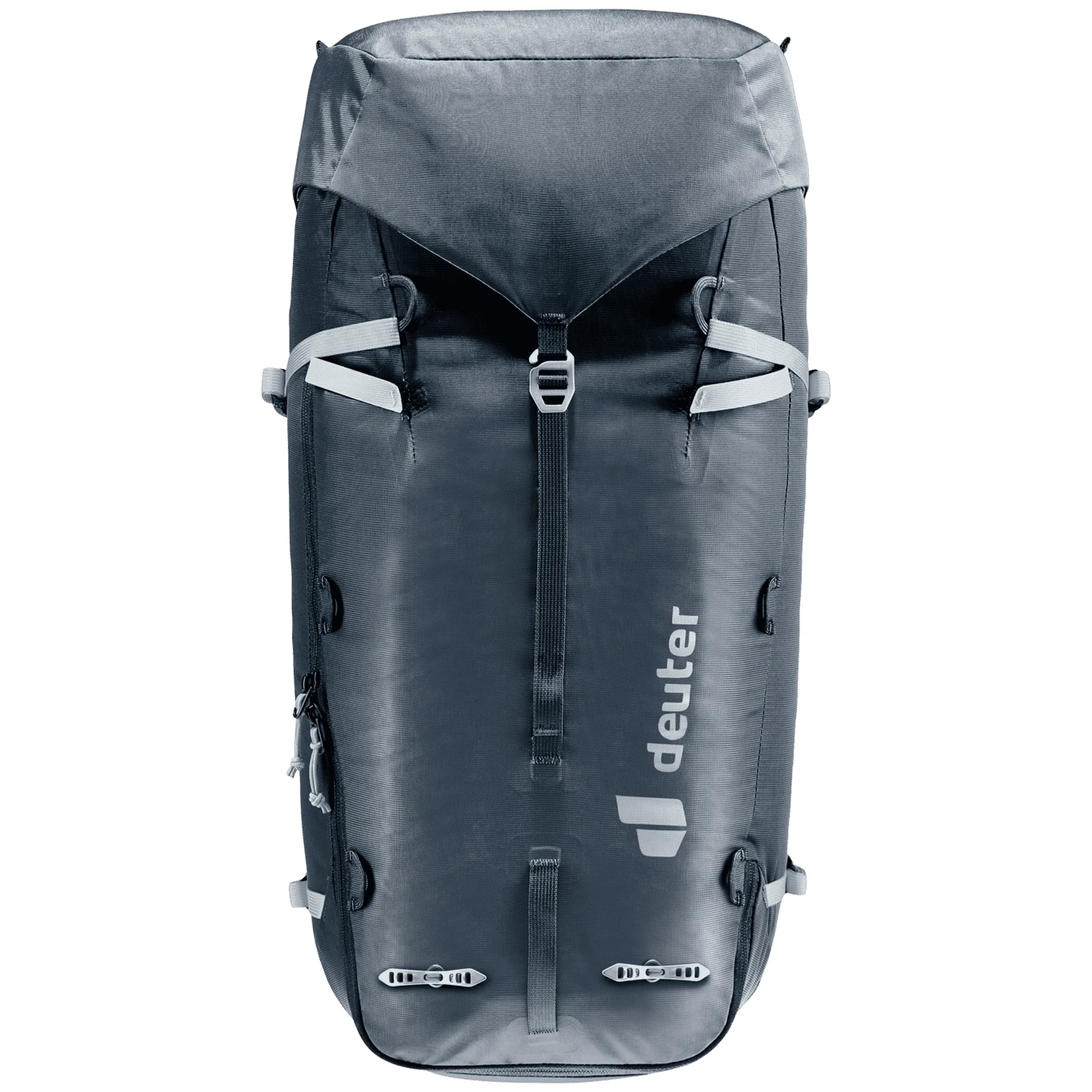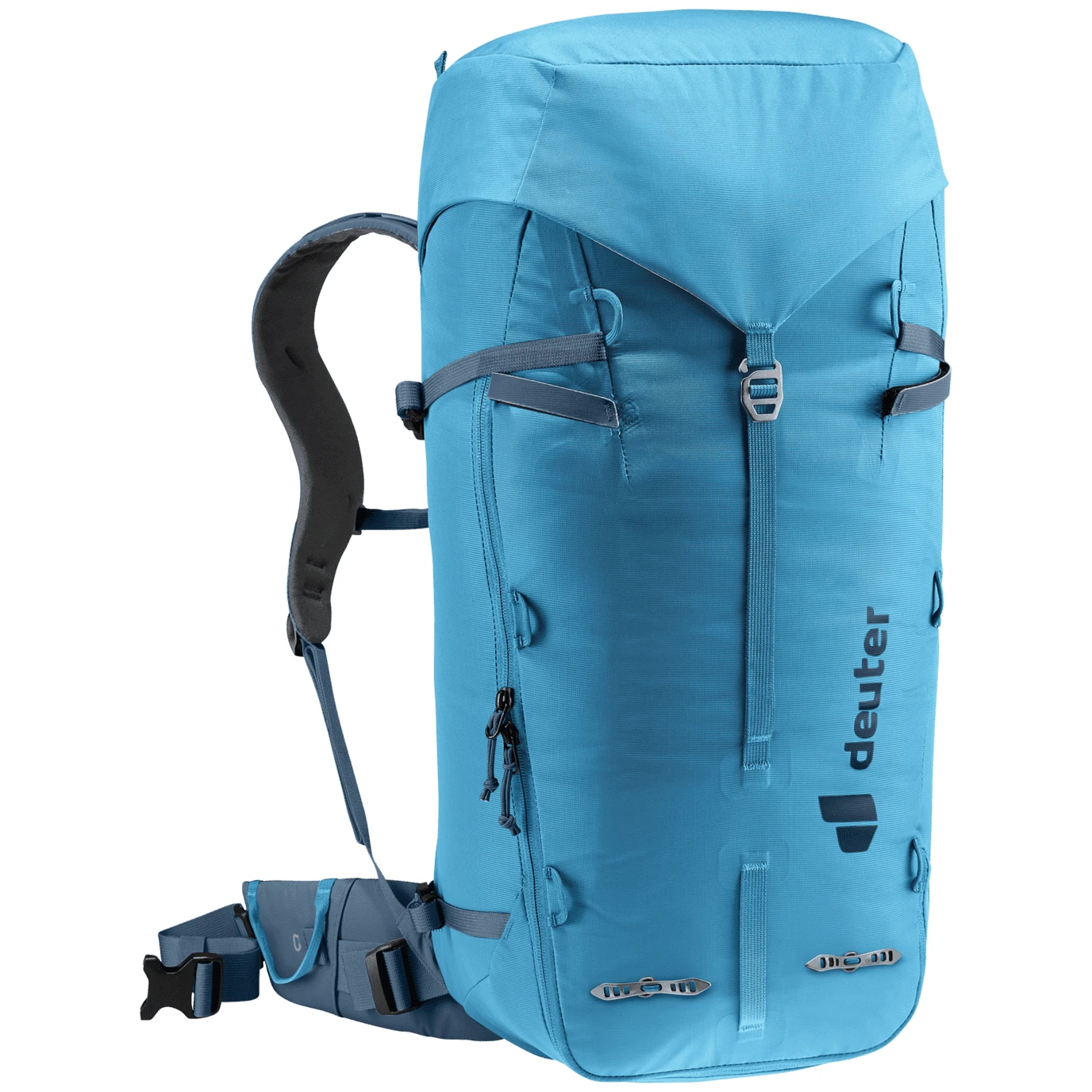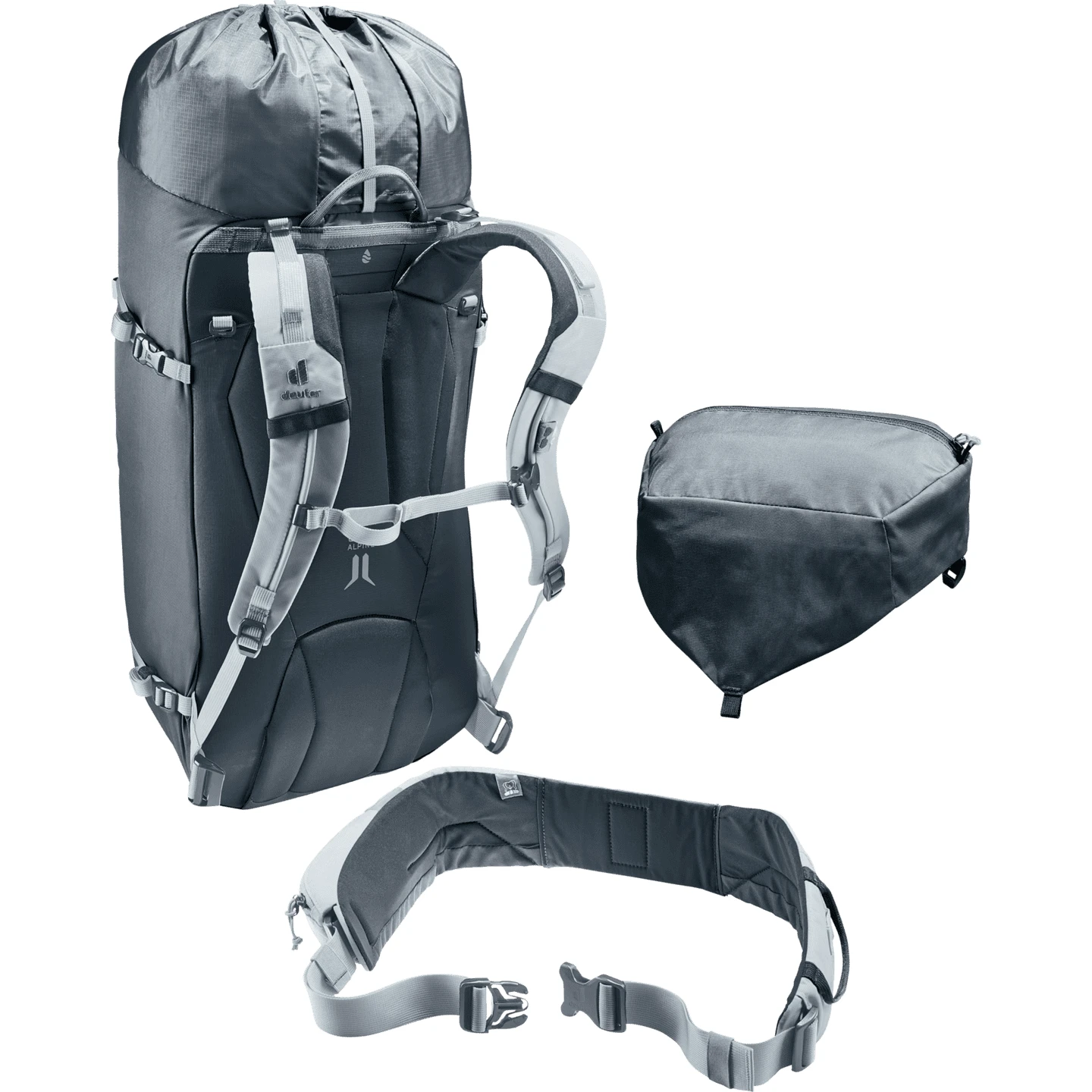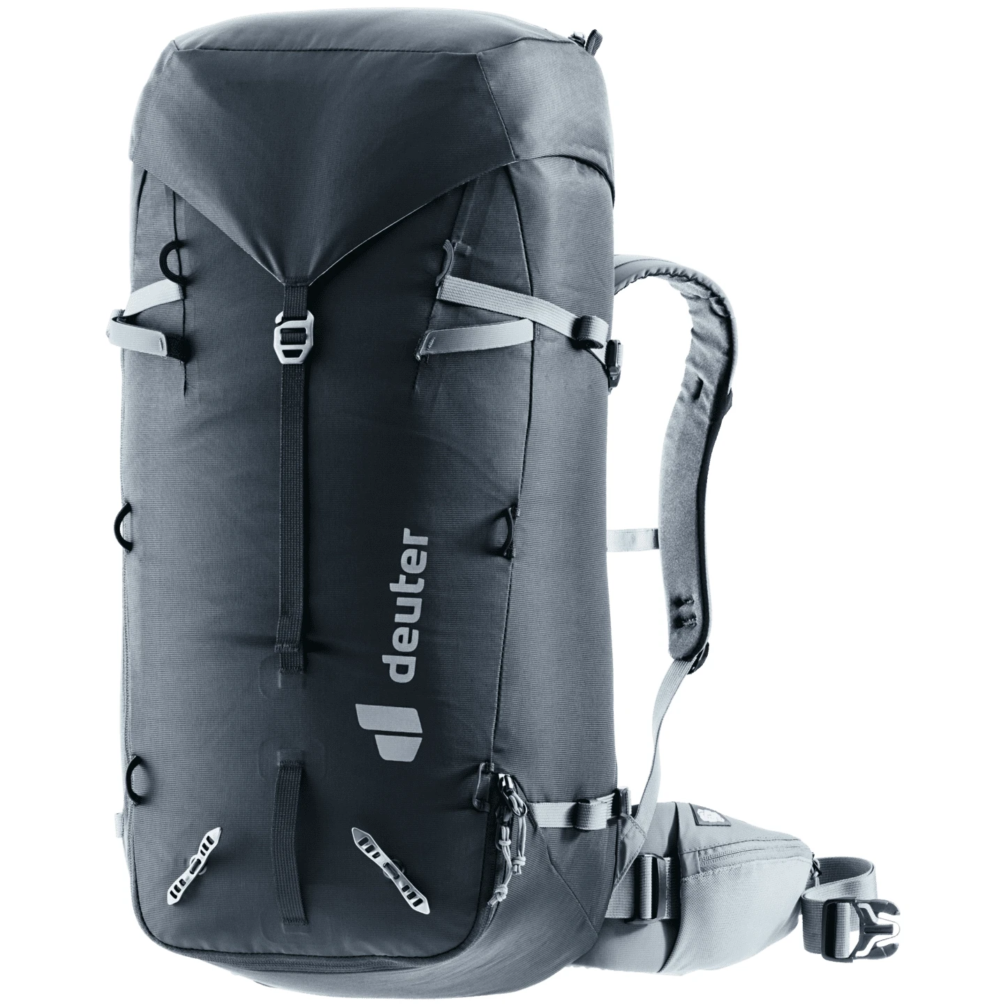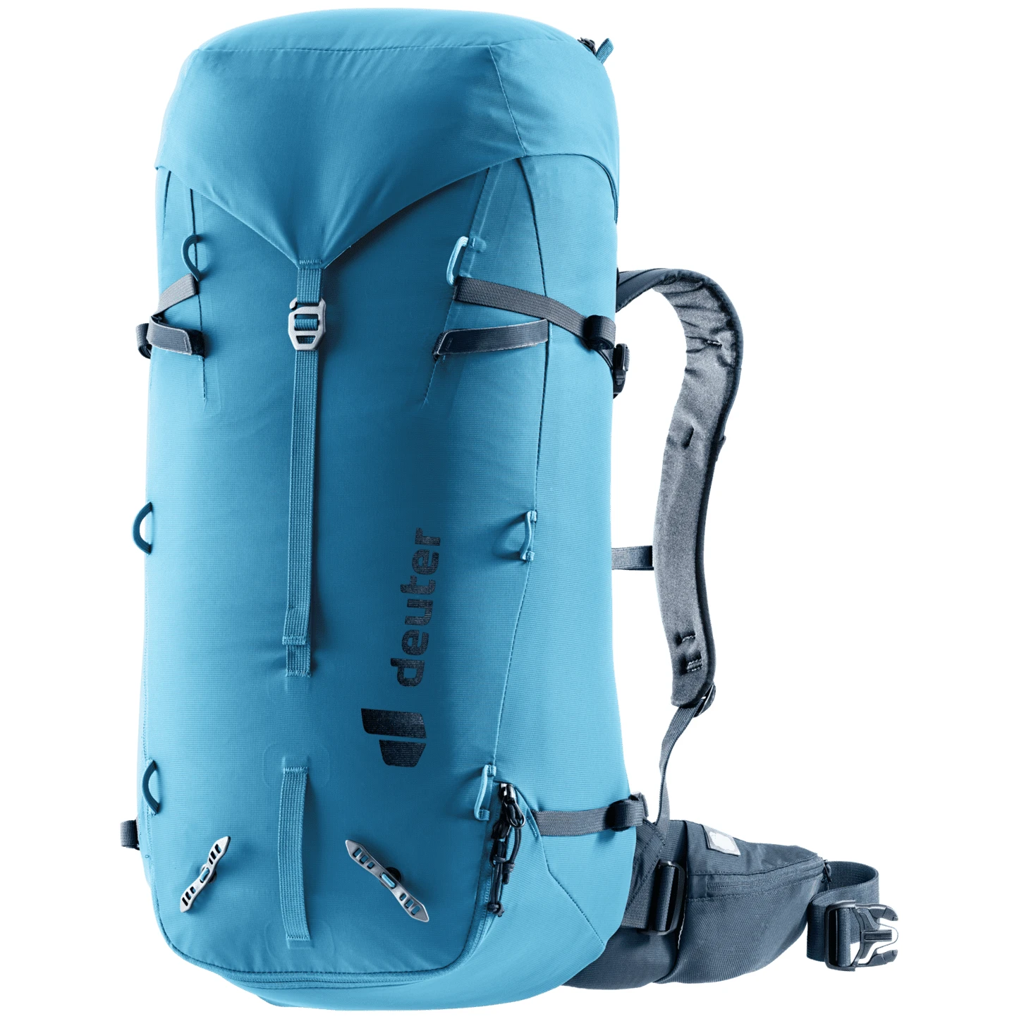 DerLeichte Kletterrucksack Deuter Guide 34+ 8 PFC-frei bietet die perfekte Balance zwischen geringem Gewicht, Komfort und Funktionalität. Gut belüftetes Rückensystem und körperbetonter Schnitt. Dadurch bleibt der Rucksack nahe Ihres Körperschwerpunkts an Ihrem Rücken befestigt. Ergonomisch, abnehmbarer Hüftgurt, strapazierfähige Materialien und verbesserte Befestigungssysteme. Und das alles mit dem Zusatz eines Seilgurts zur Aufbewahrung. Die vordere J-förmige Reißverschlussöffnung ermöglicht zudem einen schnellen Zugriff auf das Hauptfach.