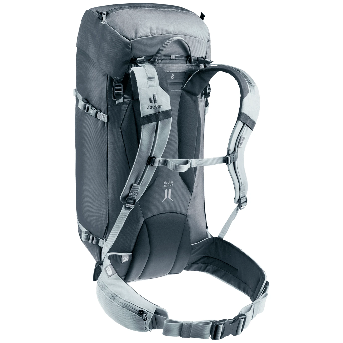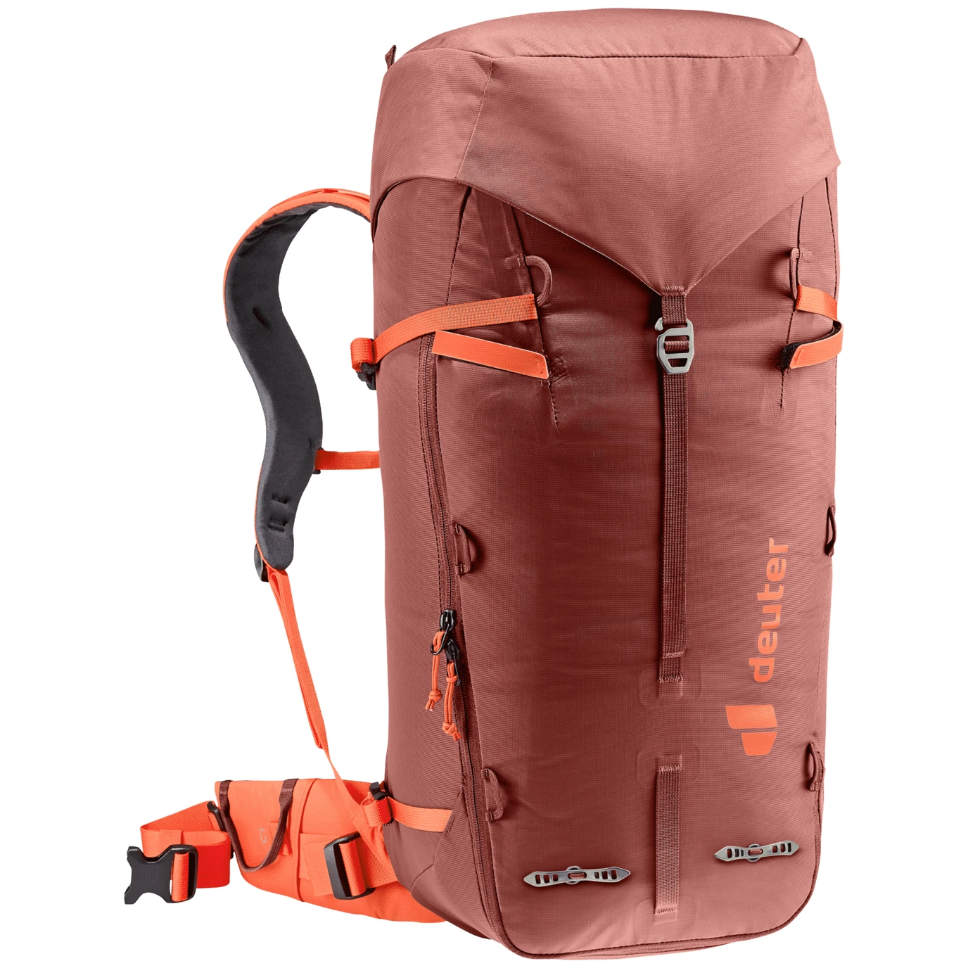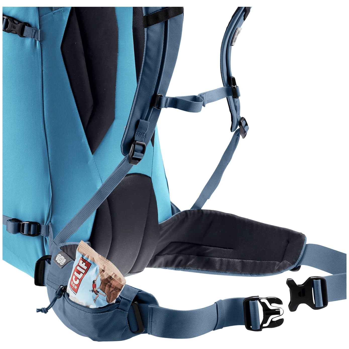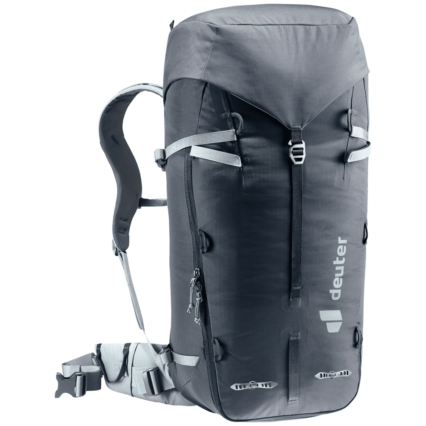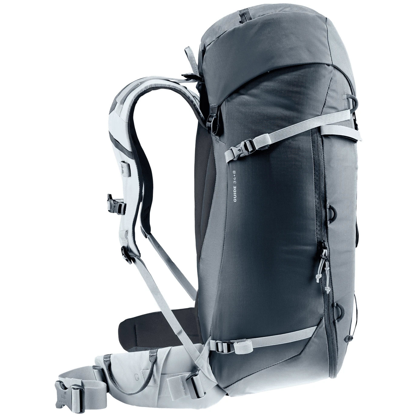 DerLeichte Kletterrucksack Deuter Guide 34+ 8 PFC-frei bietet die perfekte Balance zwischen geringem Gewicht, Komfort und Funktionalität. Gut belüftetes Rückensystem und körperbetonter Schnitt. Dadurch bleibt der Rucksack nahe Ihres Körperschwerpunkts an Ihrem Rücken befestigt. Ergonomisch, abnehmbarer Hüftgurt, strapazierfähige Materialien und verbesserte Befestigungssysteme. Und das alles mit dem Zusatz eines Seilgurts zur Aufbewahrung. Die vordere J-förmige Reißverschlussöffnung ermöglicht zudem einen schnellen Zugriff auf das Hauptfach.