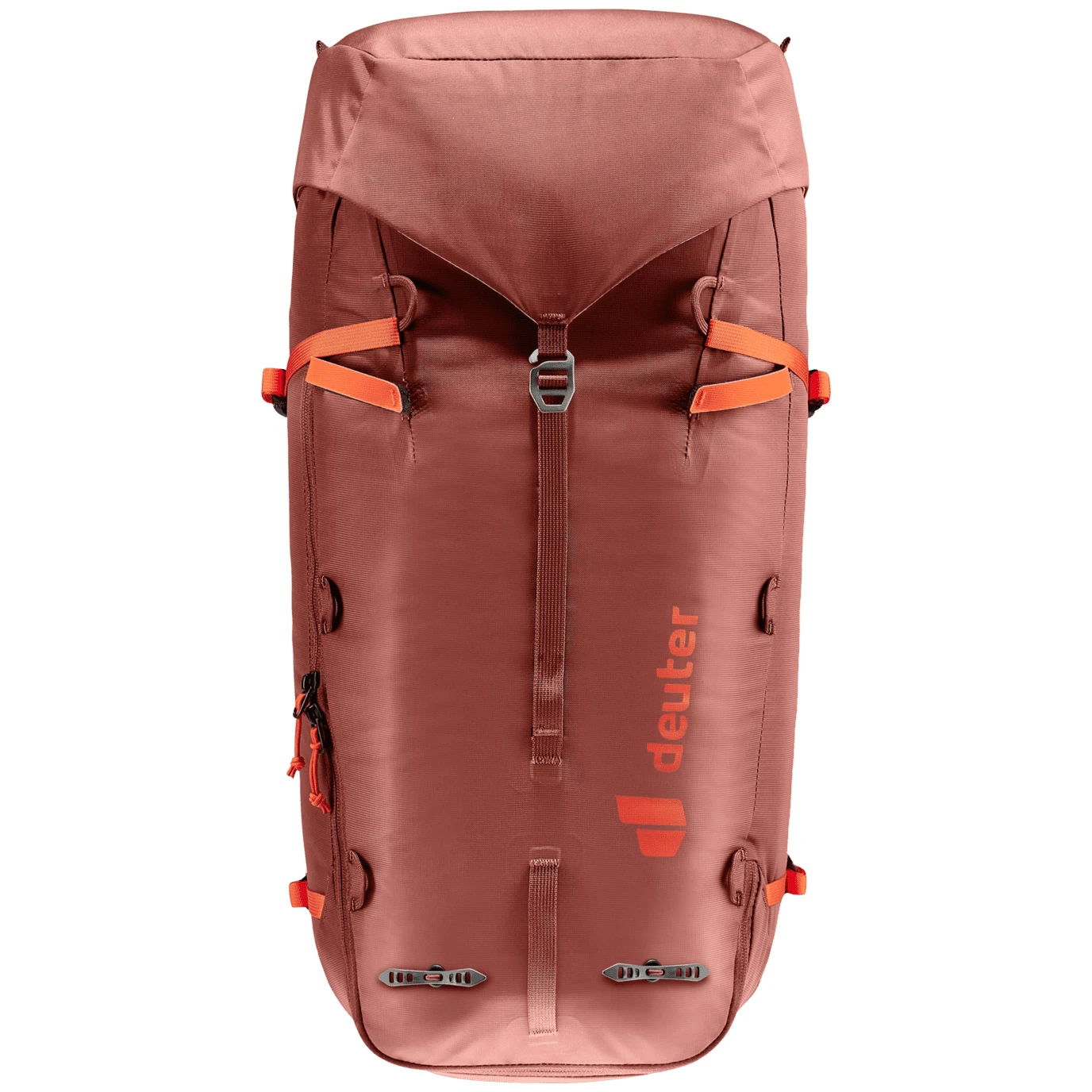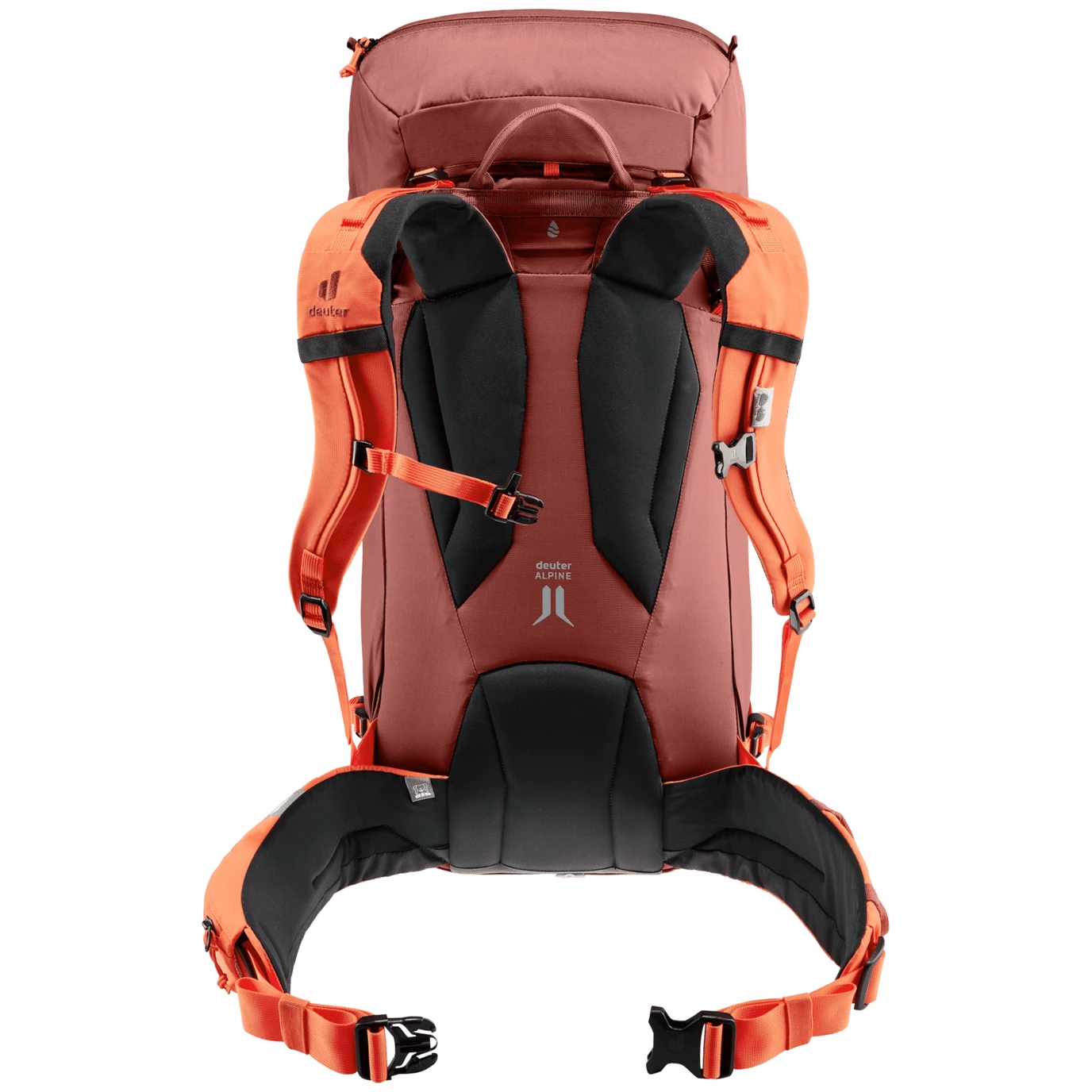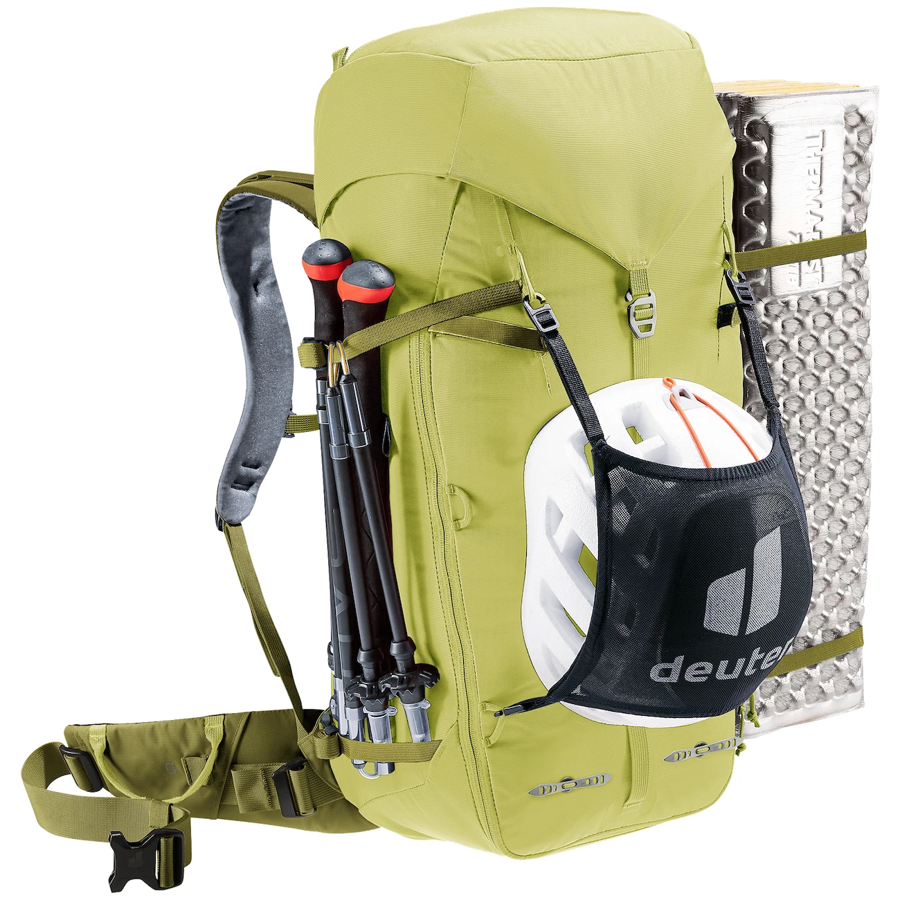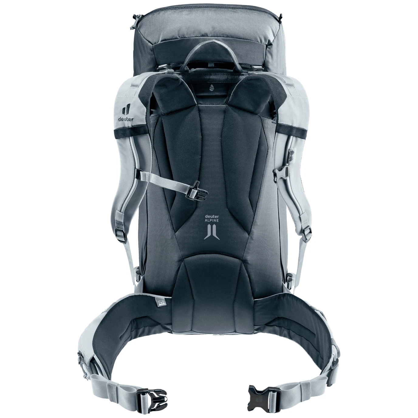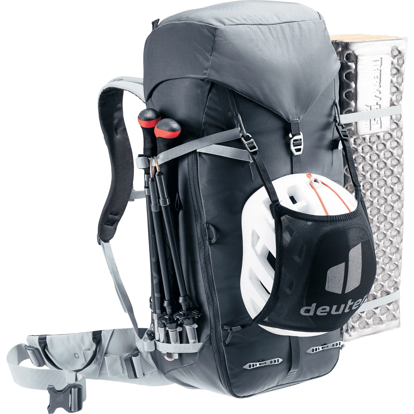 DerLeichte Kletterrucksack Deuter Guide 34+ 8 PFC-frei bietet die perfekte Balance zwischen geringem Gewicht, Komfort und Funktionalität. Gut belüftetes Rückensystem und körperbetonter Schnitt. Dadurch bleibt der Rucksack nahe Ihres Körperschwerpunkts an Ihrem Rücken befestigt. Ergonomisch, abnehmbarer Hüftgurt, strapazierfähige Materialien und verbesserte Befestigungssysteme. Und das alles mit dem Zusatz eines Seilgurts zur Aufbewahrung. Die vordere J-förmige Reißverschlussöffnung ermöglicht zudem einen schnellen Zugriff auf das Hauptfach.