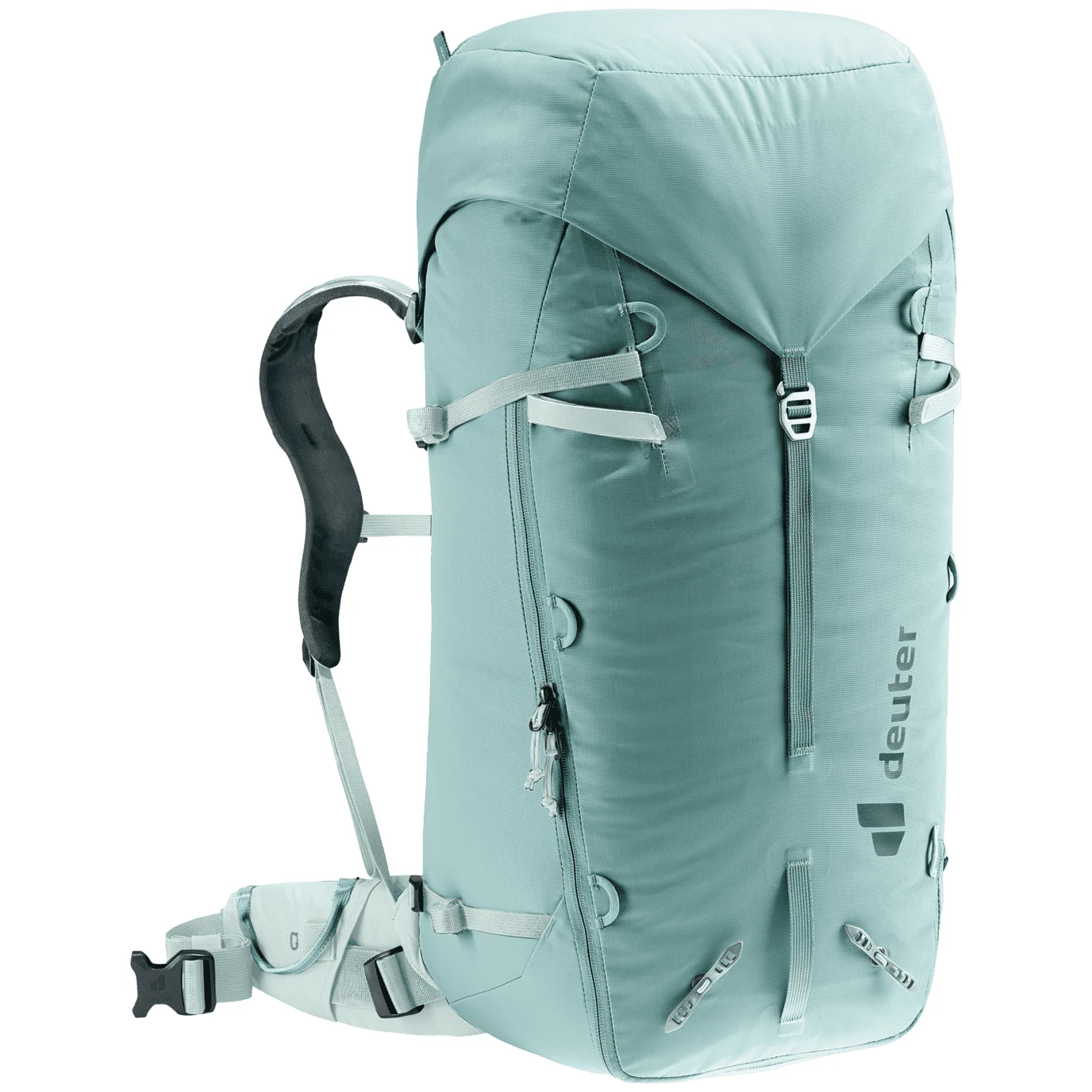 Leichter Kletterrucksack Deuter Guide 42+8 SL PFC-frei bietet die perfekte Balance zwischen geringem Gewicht, Komfort und Funktionalität. Gut belüftetes Rückensystem und körperbetonter Schnitt. Dadurch bleibt der Rucksack nahe Ihres Körperschwerpunkts an Ihrem Rücken befestigt. Ergonomisch, abnehmbarer Hüftgurt, strapazierfähige Materialien und verbesserte Befestigungssysteme. Und das alles mit dem Zusatz eines Seilgurts zur Aufbewahrung. Die vordere J-förmige Reißverschlussöffnung ermöglicht zudem einen schnellen Zugriff auf das Hauptfach.