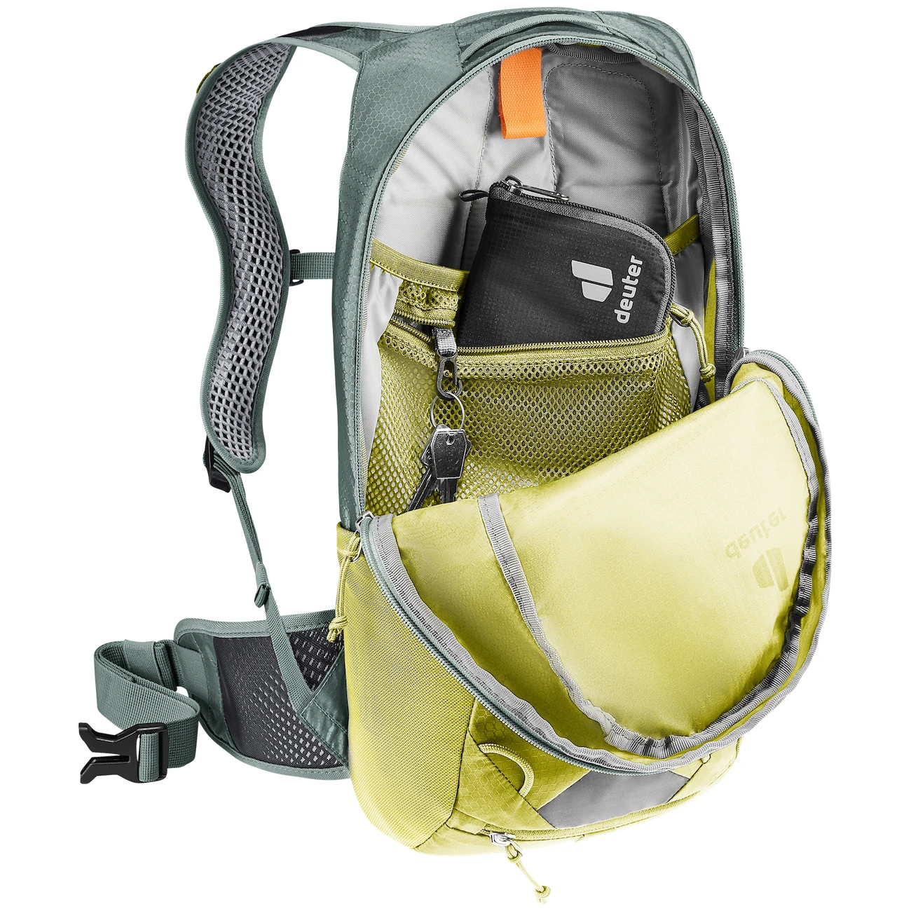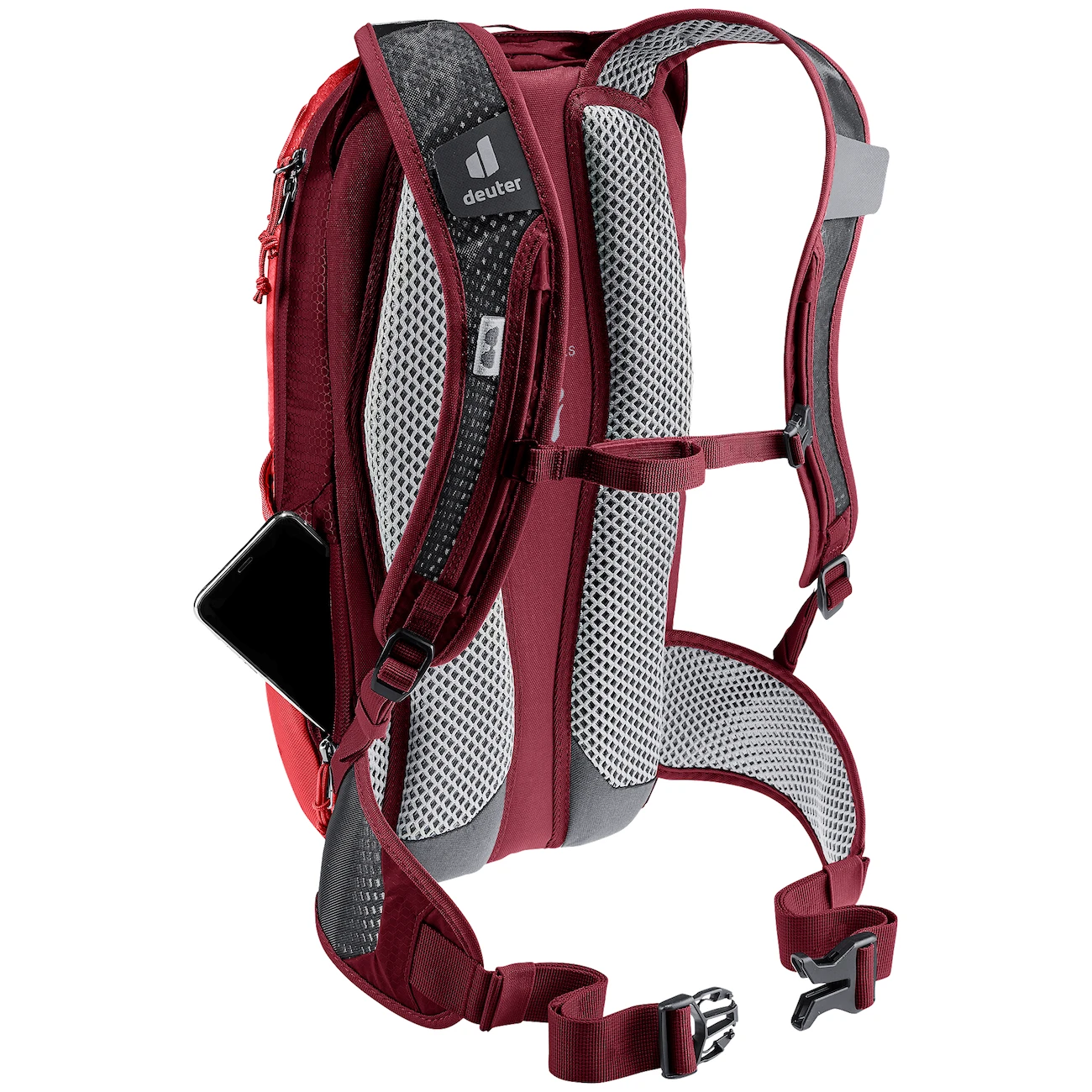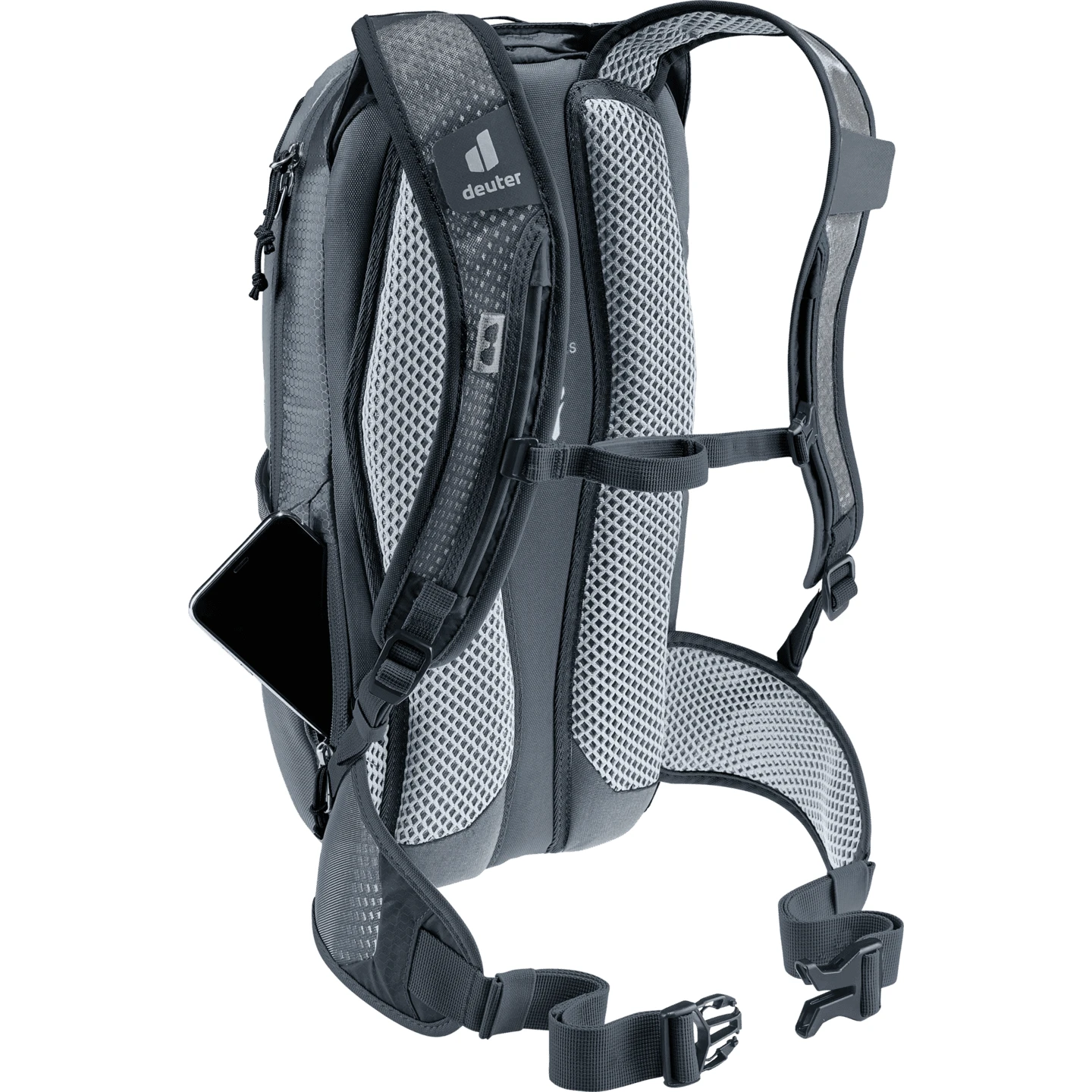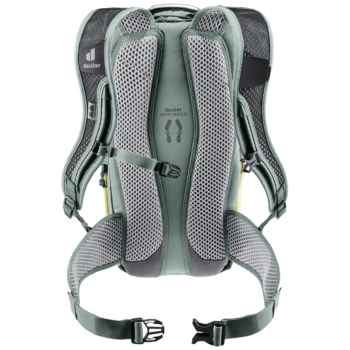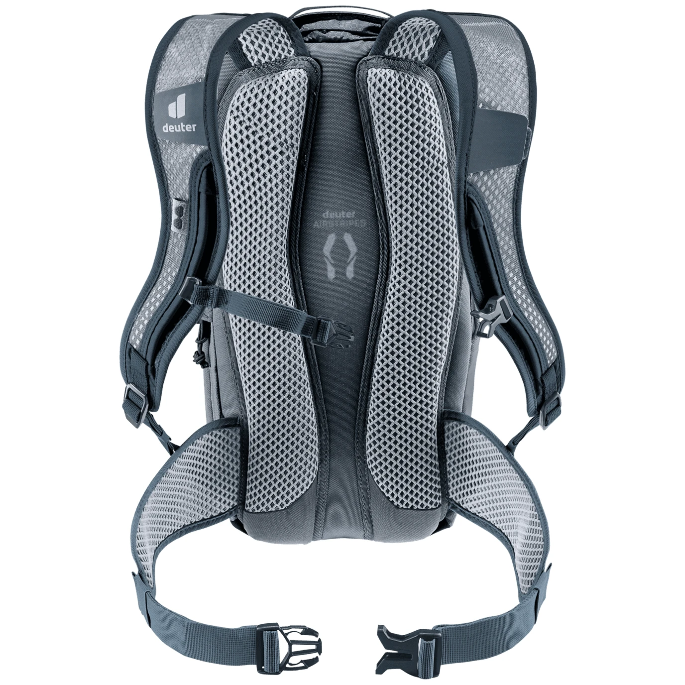 Dieser verkürzte Fahrradrucksack Deuter Race 8 mit gutem Gewicht-Komfort-Verhältnis profitiert vom atmungsaktiven deuter AirstripesRückensystem. Es sorgt für eine gute Luftzirkulation, insbesondere bei technischen Abfahrten und Anstiegen, was jeder Biker zu schätzen weiß. Der Brustgurt und die Mesh-Hüftflossen am Hüftgurt geben dem Rucksack zusätzliche Stabilität, die du am Sitz des Rucksacks spüren wirst. Der Stoff ist von bluesign® zertifiziert und aus 100 % recyceltem Material hergestellt. Damit erfüllt der Rucksack höchste Umweltstandards und ist klimaneutral und PFC-frei.