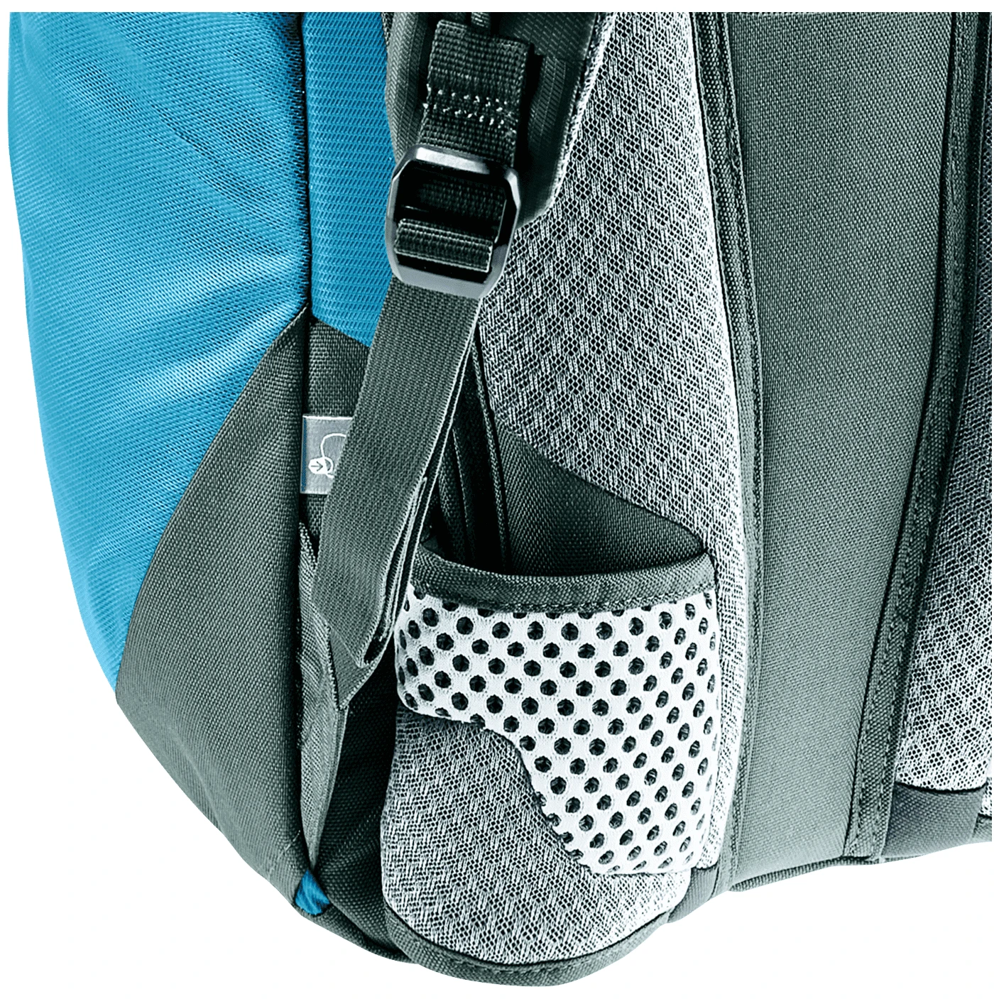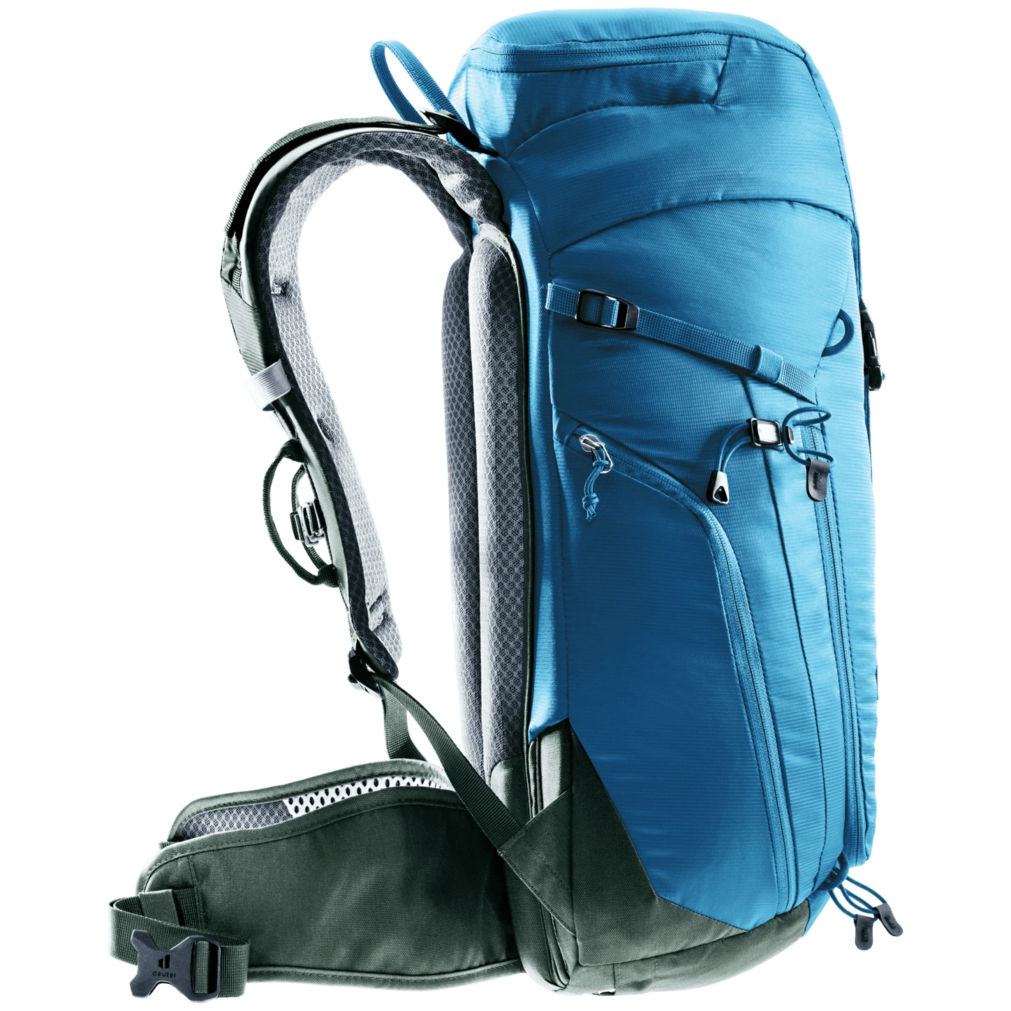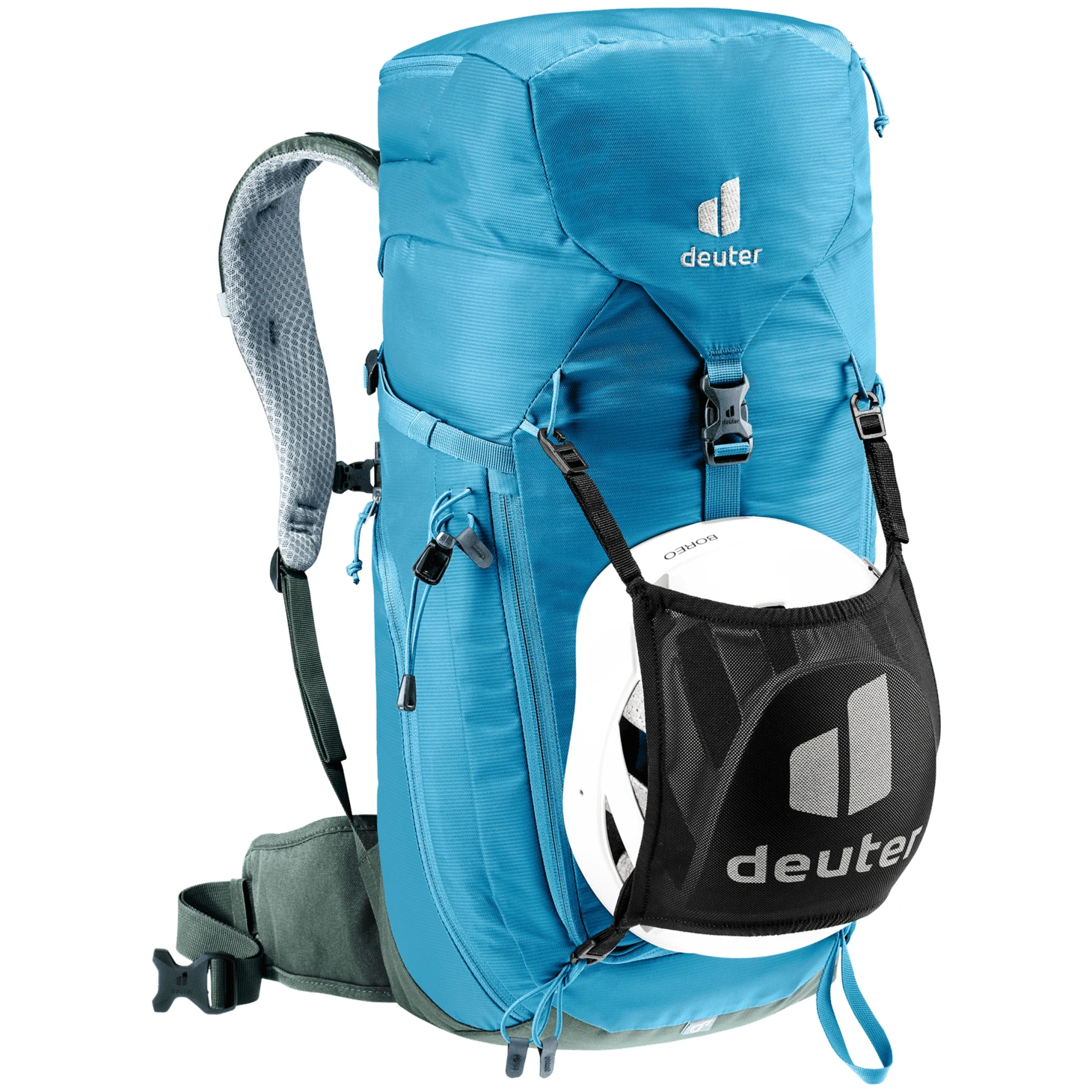 Wander-/Kletterrucksack Deuter Den Trail 24 kannst du nicht nur zum Klettern, sondern auch für längere Wanderungenverwenden. Der Rucksack verfügt über ein sehr komfortables Rückensystem und Schultergurte. Diereduzierte Kontaktfläche und die großen Belüftungskanäle des Deuter Airstripes -Rückensystems sorgen in Kombination mit perforierten Schultergurten und Hüftflossen für maximale Luftzirkulation und gleichmäßige Gewichtsverteilung in jedem Gelände. Schlaufen an den Schultergurten halten die Karabiner des Klettersteigsets griffbereit. Zudem sind mehrere Taschen, insbesondere Seitentaschen, vorhanden, die man mit den Händen erreichen kann.