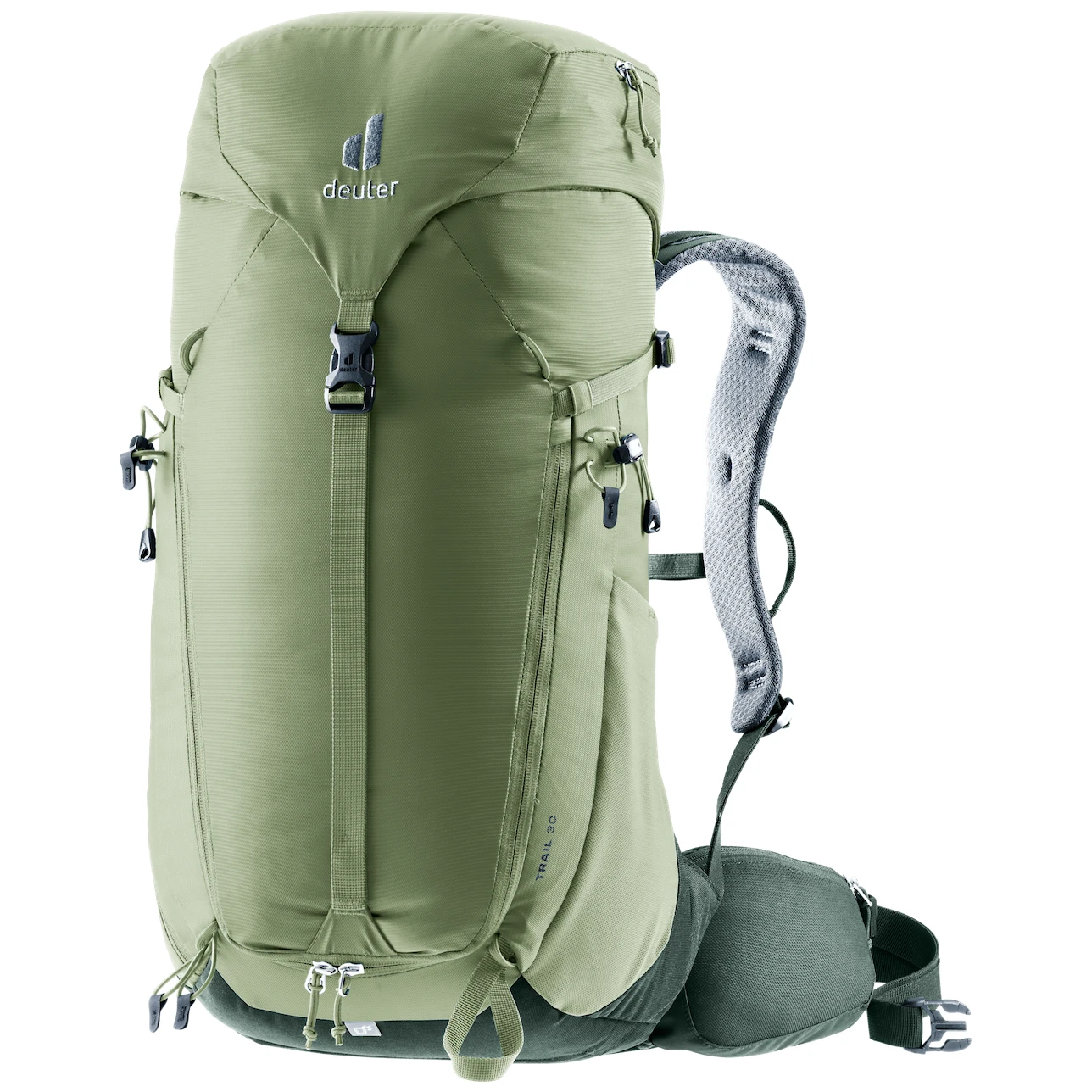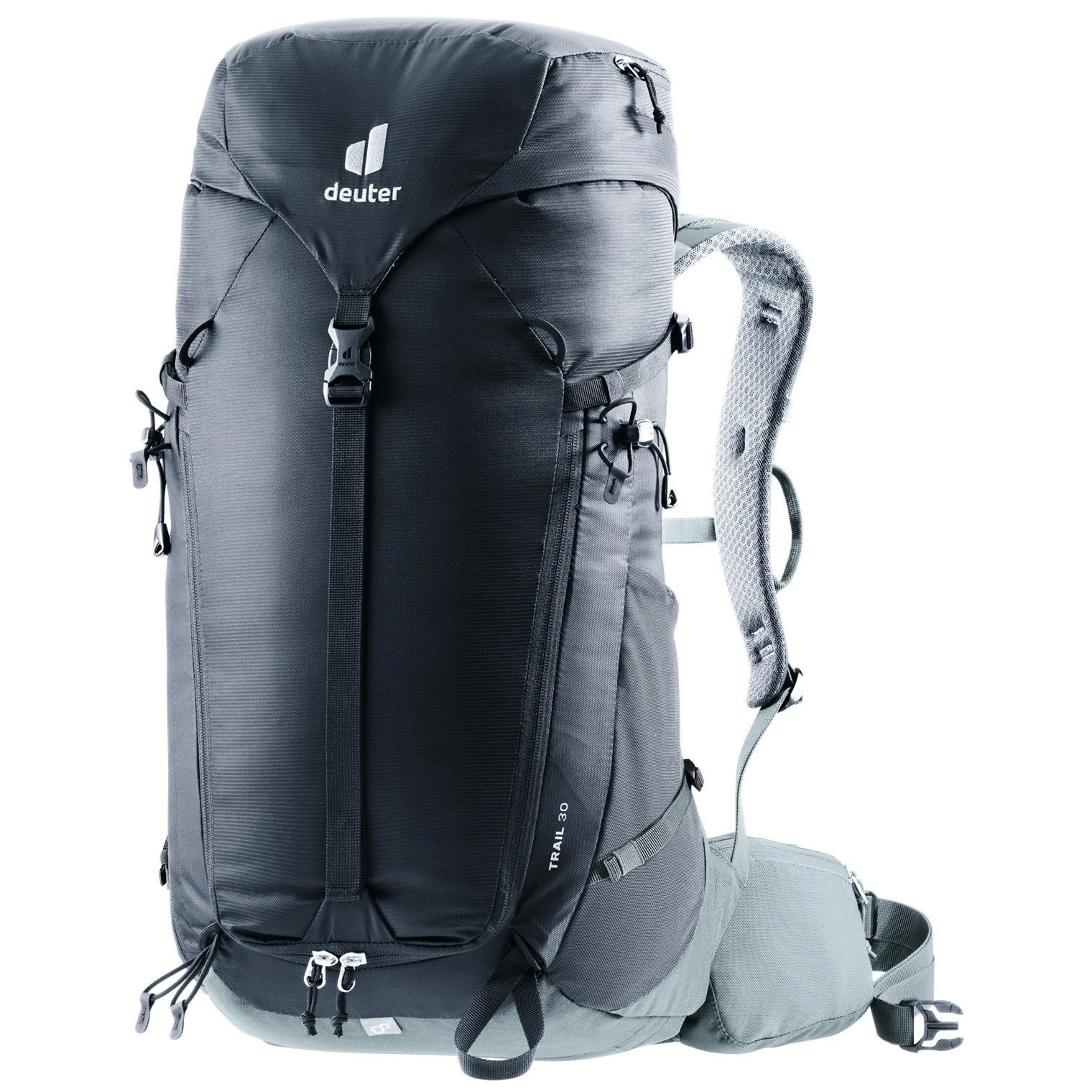 Der komfortable Wanderrucksack Trail 30 der Marke Deuter ist sehr leicht und dank innovativer Details ein idealer Begleiter auf Klettersteigen. Der Rucksack besteht aus einer Kombination aus recyceltem Polyamid und leichtem gewebtem Polyestergarn, das reißfestist. Das verwendete Material ist umweltfreundlich und ClimatePartner-zertifiziert. Aircontact-Rückensystem, das höchsten Tragekomfort garantiert und durch innovative Details wie den Karabinerhaken an den Schultergurten überzeugt.