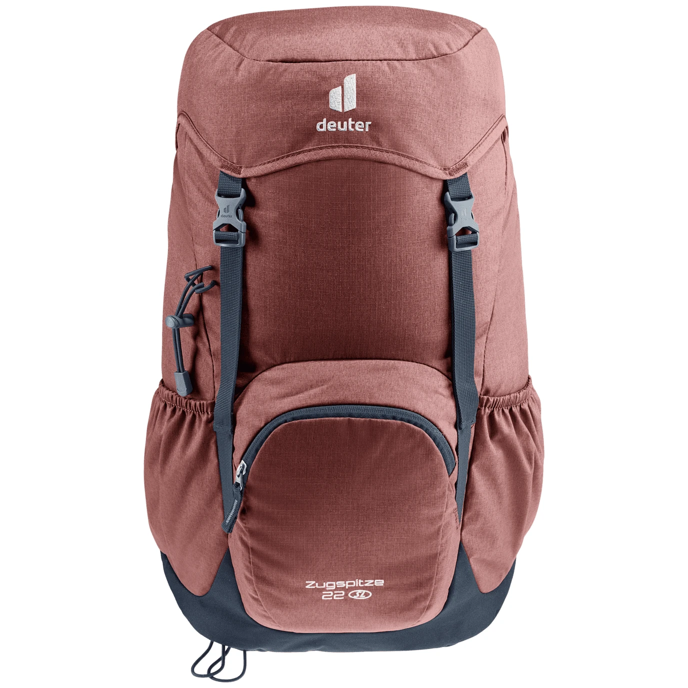 Wanderrucksack Deuter Zugspitze 22 SL im Retro-Stil für jeden Abenteurer, der auf der Suche nach einer Kombination aus Moderne und Nostalgieist. Der Rucksack hat mehrere Taschen. Haupttasche oben, zweite Fronttasche und Seitentaschen für Getränke oder Kleinigkeiten. Der Rucksack verfügt über einen leichten Hüftgurt, einen Brustgurt und gepolsterte anatomisch geformte Gurte.