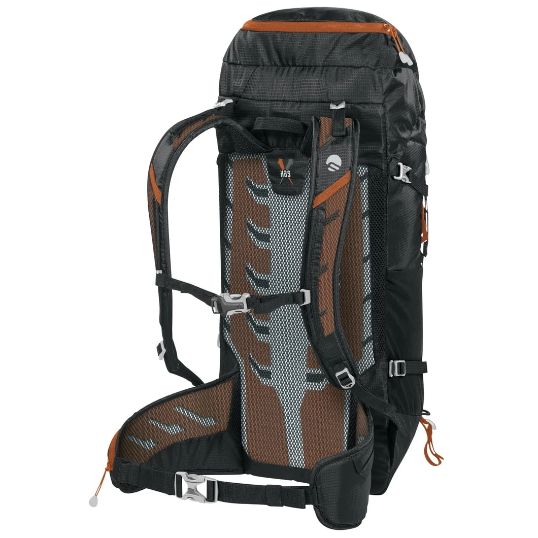 Das Mesh-Rückensystem schafft Platz zwischen Ihrem Rücken und dem Rucksack. Die Luft kann frei zirkulieren, was die Rückenbelüftung verbessert und die Schweißverdunstung beschleunigt. Der Nachteil ist eine leichte Verringerung des Innenvolumens und ein schlechterer Schwerpunkt.