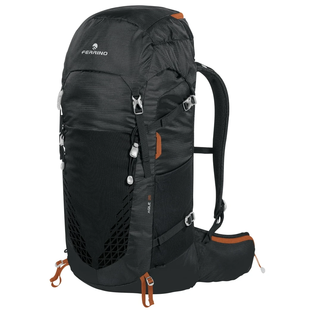 Der Universalrucksack Agile 25 der Marke Ferrino verfügt über ein komfortables H-Rückensystem. B. S., das die Atmungsaktivität fördert. Gepolsterte Schultergurte und ein breiter Hüftgurt sorgen dafür, dass der Rucksack fest an seinem Platz bleibt und einen hohen Tragekomfort bietet. Der obere Eingang mit Kordelzug befindet sich unter dem Deckel, sodass Ihre Sachen immer sicher sind.