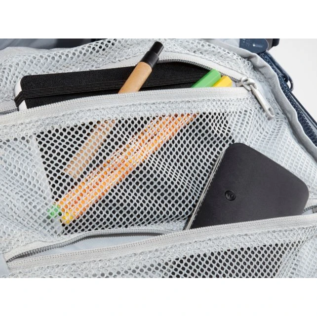 Das Mesh-Rückensystem schafft Platz zwischen Ihrem Rücken und dem Rucksack. Die Luft kann frei zirkulieren, was die Rückenbelüftung verbessert und die Schweißverdunstung beschleunigt. Der Nachteil ist eine leichte Verringerung des Innenvolumens und ein schlechterer Schwerpunkt.