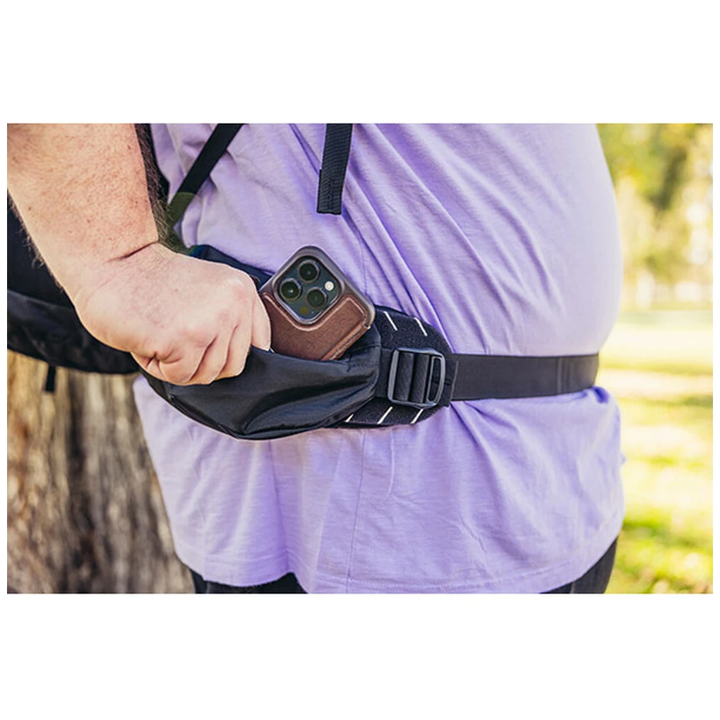 Er schafft einen zusätzlichen Stützpunkt und hilft, das Lastgewicht von den Schultern auf das Becken zu verteilen. Ein hochwertiger und gut eingestellter Hüftgurt trägt mehr als 60 % des Gewichts des Rucksacks.
