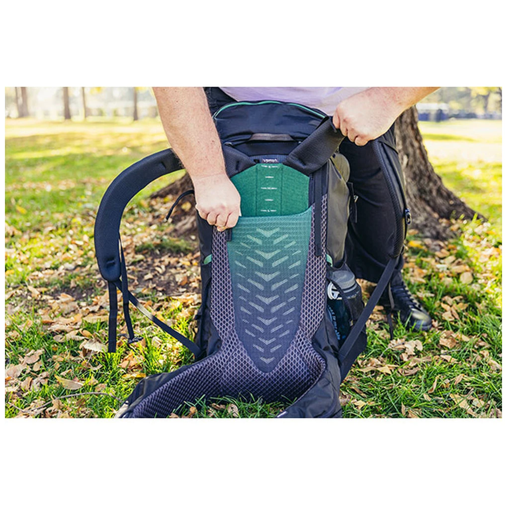 Das VersaFit-Rückensystem passt sich dank verstellbarer Rumpflänge und Hüftgurt jeder Körperform an, ist gepolstert und hoch atmungsaktiv. Der Rucksackrahmen besteht aus einer Leichtmetalllegierung, die die Rumpfflexibilität und Laststabilisierungmaximiert. Der Tragekomfort wird durch einen atmungsaktiven Schultergurt mit Brustgurt und einer Sicherheitspfeife direkt an der Schnalle erhöht.