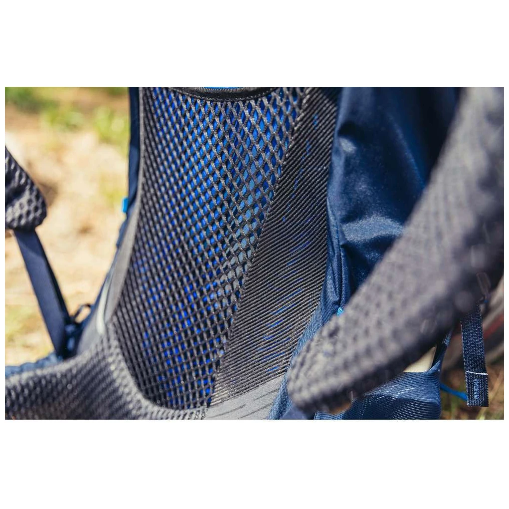 Das Mesh-Rückensystem schafft Platz zwischen Ihrem Rücken und dem Rucksack. Die Luft kann frei zirkulieren, was die Rückenbelüftung verbessert und die Schweißverdunstung beschleunigt. Der Nachteil ist eine leichte Verringerung des Innenvolumens und ein schlechterer Schwerpunkt.