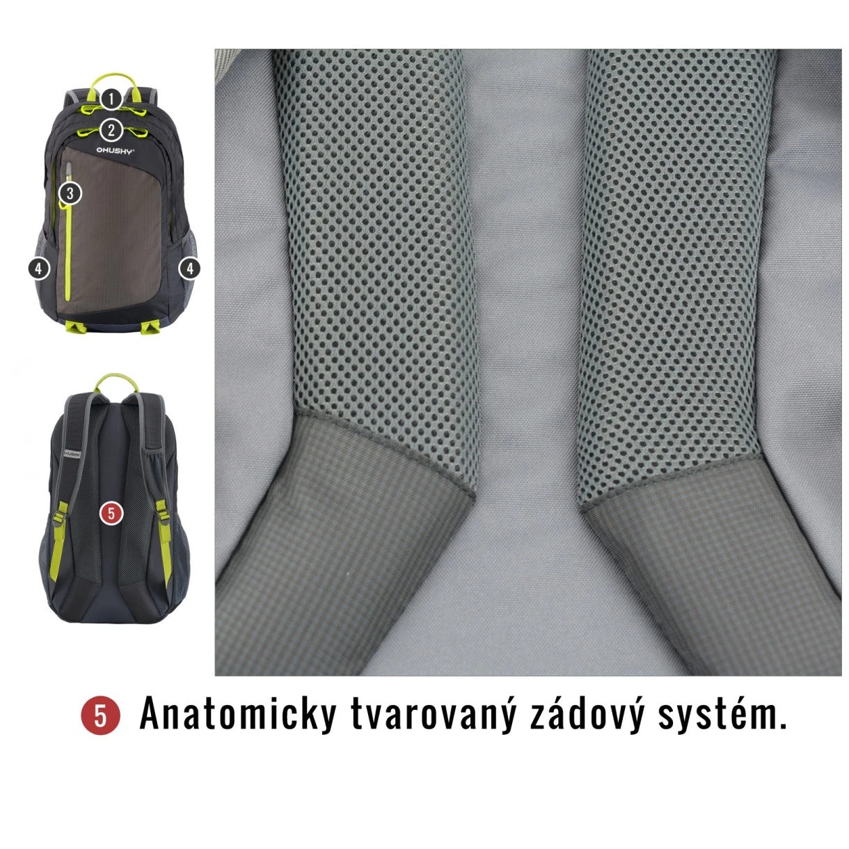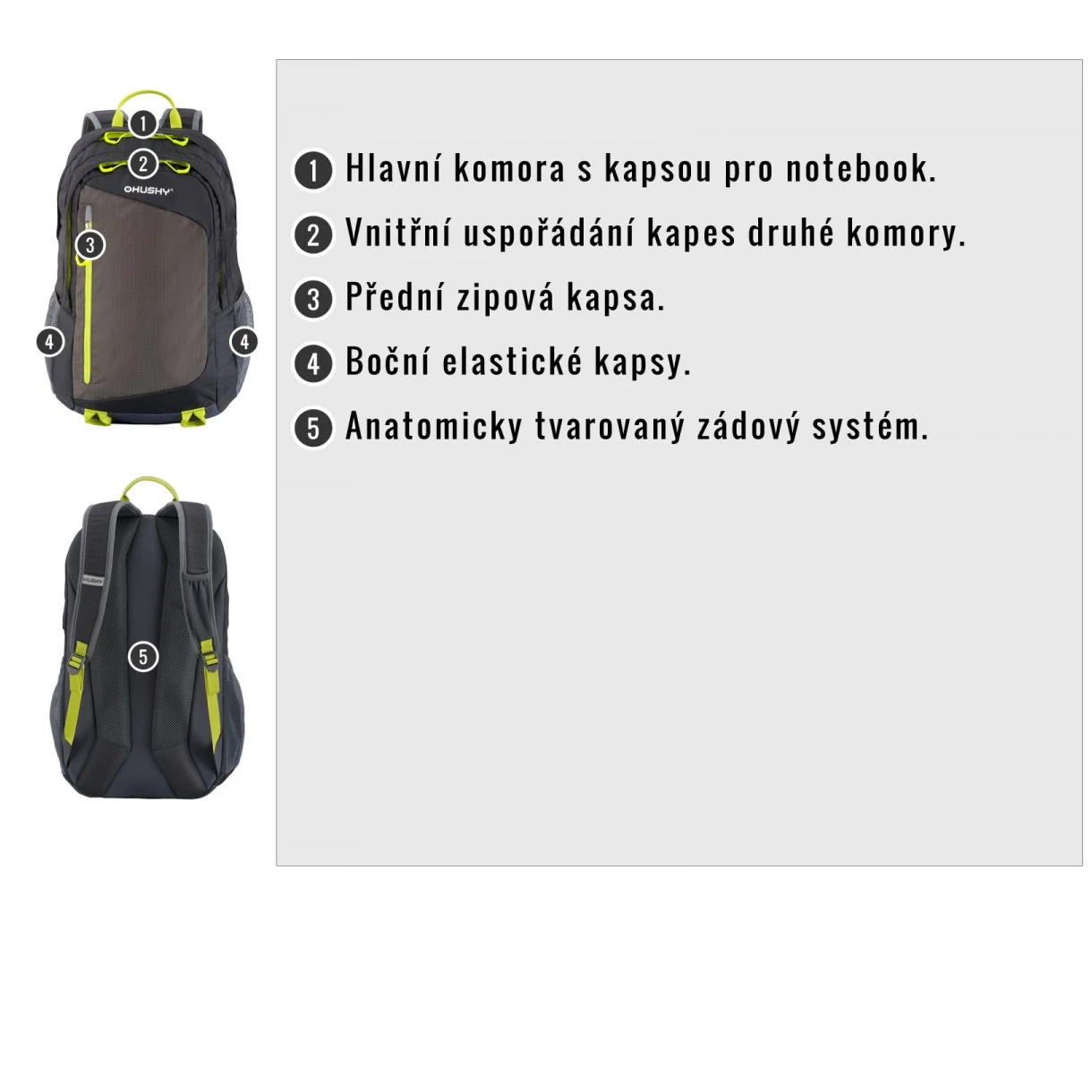 Der schlichte City-Rucksack Husky Marel 27 l bietet Platz für 2 Fächer, eines davon mit verschließbarem Laptopfach. Praktisch sind auch der interne Organizer, eine Reißverschlusstasche auf der Vorderseite und elastische Taschen an den Seiten des Rucksacks. Das AMS-Rückensystem und die Schultergurte sind anatomisch geformt. Die Oberfläche des Rucksacks ist wasserdicht beschichtet und mit reflektierenden Elementen versehen.