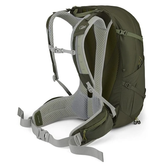 Wanderrucksack Lowe Alpine Der AirZone Trail Duo 32 verfügt über zwei separate Fächer, viele Taschen und ein einfaches Stockbefestigungssystem – damit Sie jederzeit schnell zur Hand haben, was Sie brauchen. Der Rucksack verfügt über ein maximal belüftetes AirZone™-Rückensystem. AirZone™ ist ein leichtes, aber robustes Tragesystem, das Freiraum zwischen dem Rucksack und Ihrem Rücken schafft. An heißen Tagen und anstrengenden Anstiegen umströmt frische Luft den Körper.