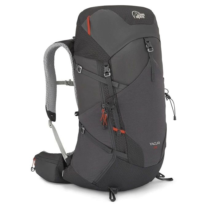 Der universelle Rucksack Yacuri 38 der Marke Lowe Alpine lässt sich das ganze Jahr über nutzen, zum Beispiel auf dem Land außerhalb der Stadt oder auch mal weiter weg für eine kleinere Bergwanderung. Das spezielle V-TRAX™-Stützsystem ist verstellbar (mit Klettverschluss) und thermogeformt. Es liegt bequem auf Ihrem Rücken und an den entsprechenden Stellen wurde Material entfernt, um für zusätzliche Belüftung zu sorgen. Dies verleiht dem Rucksack ein geringes Gewicht, sorgt aber gleichzeitig für ein angenehmes Tragegefühl. Der Deckel verfügt über eine Außen- und Innentasche, das Hauptfach ist über einen seitlichen Eingang schnell erreichbar, in der Fronttasche lässt sich beispielsweise eine Karte gut verstauen und in den Taschen am Hüftgurt lassen sich sonstige Kleinigkeiten verstecken. Auch Trekkingstöcke lassen sich problemlos an der Vorderseite des Rucksacks befestigen.