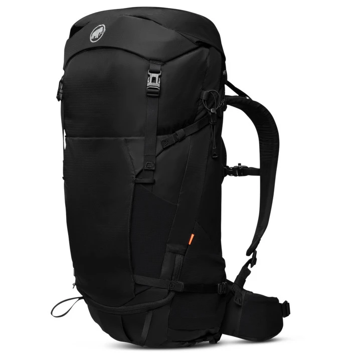 Der Lithium 40-Rucksack von Mammut mit 40 Litern Fassungsvermögen macht Ihre Bergwanderungen schneller und effizienter. Der Rucksack ist überwiegend aus recycelten Materialien mit wasserabweisender Beschichtung, PFC-frei. Für maximalen Tragekomfort lassen sich die Rückenlänge sowie der anatomisch geformte und weich gepolsterte Hüftgurt und die Schultergurte individuell an Ihre Bedürfnisse anpassen. Wenn Sie den Hüftgurt nicht benötigen, können Sie ihn einfach abnehmen. Gleiches gilt für die integrierte Regenhülle und das untere Fach mit externem Zugang.