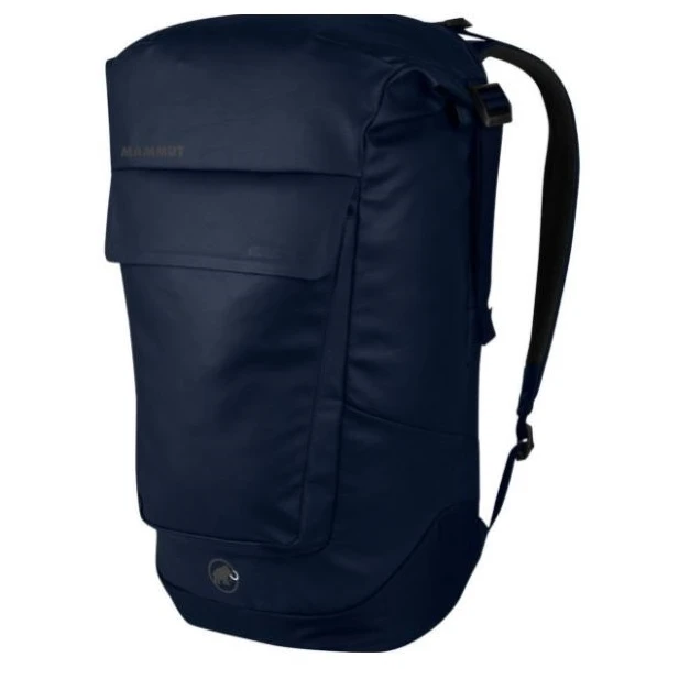 Auf der Vorderseite befinden sich eine weitere Reißverschlusstasche und ein Schlüsselclip. Für optimale Stabilität und höheren Tragekomfort sorgt ein integriertes Rückenpanel. Der Rucksack verfügt über einen Rolltop-Verschluss für schnelleren Zugriff auf das Hauptfach.
