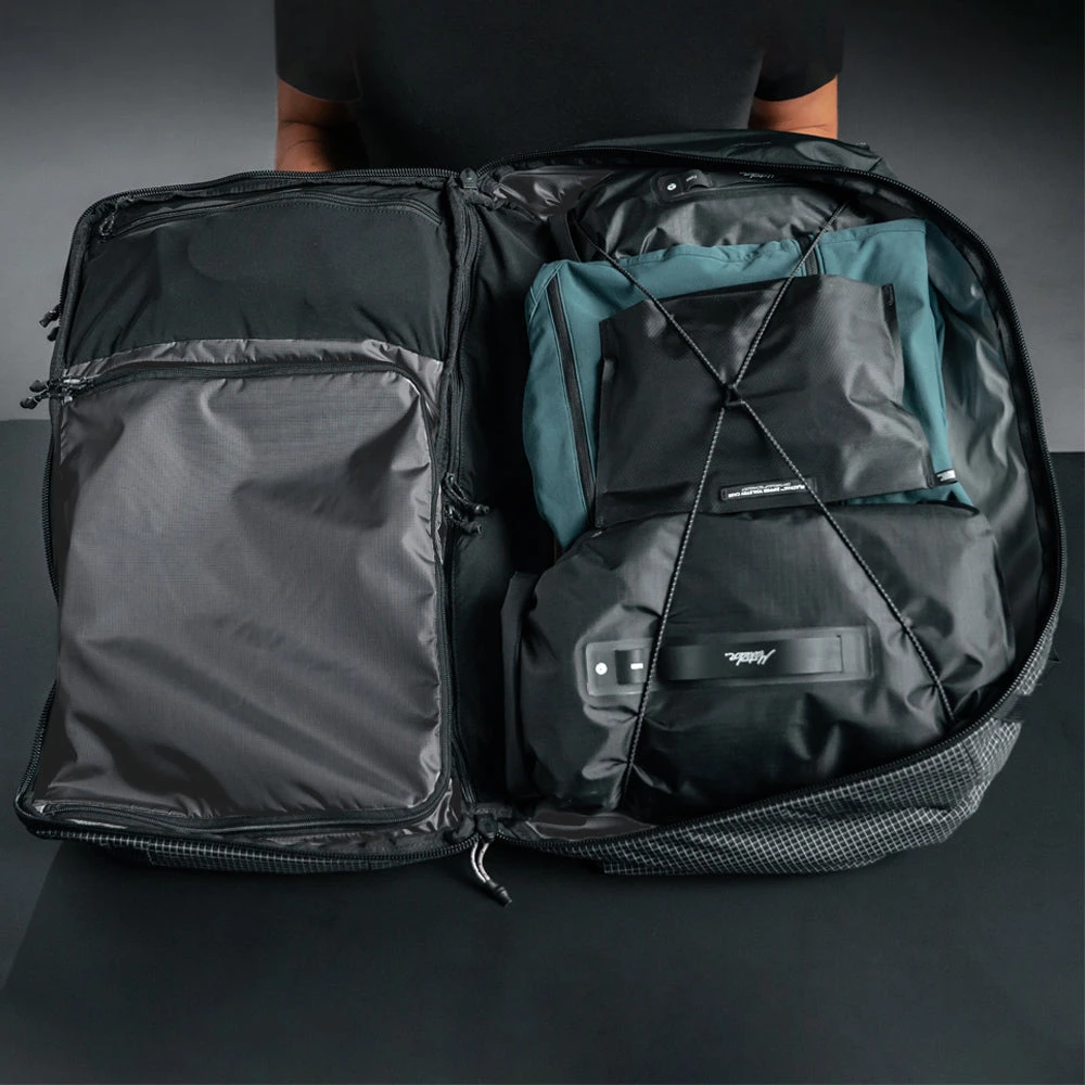 Für maximalen Tragekomfort sorgt das gepolsterte Rückenteil , welches mit einer HDPE-Platte und einem Aluminiumrahmen für mehr Stabilität verstärkt ist. Ergänzt wird das Panel dann noch durch gepolsterte und verstellbare Schultergurte sowie einen gepolsterten Hüftgurt. Die Träger und Gurte können hinter der Rückenplatte verstaut werden, was für kompaktere Abmessungen und ein geringeres Risiko von Beschädigungen (z. B. im Flugzeug) sorgt. Zur komfortablen Handhabung des Rucksacks tragen außerdem vier Tragegriffe an Ober- und Unterseite, sowie an der Seite bei.