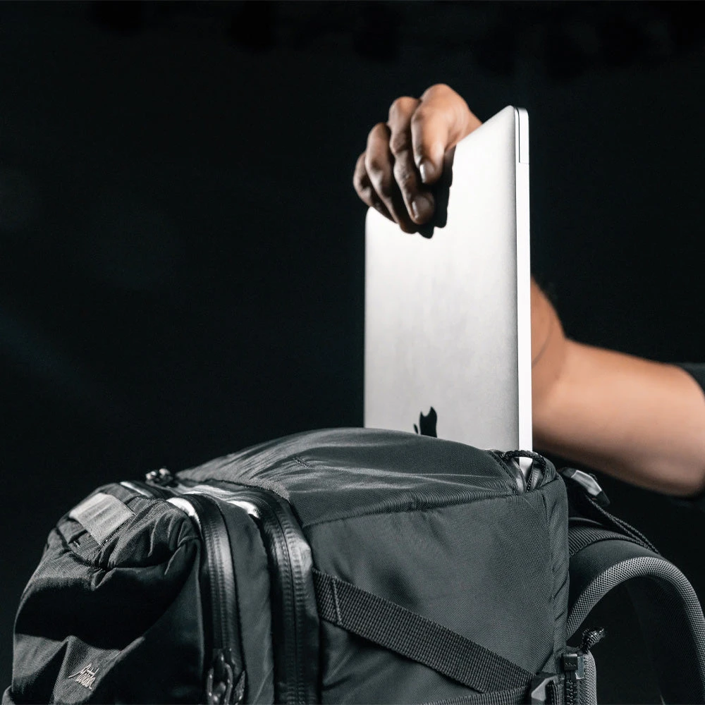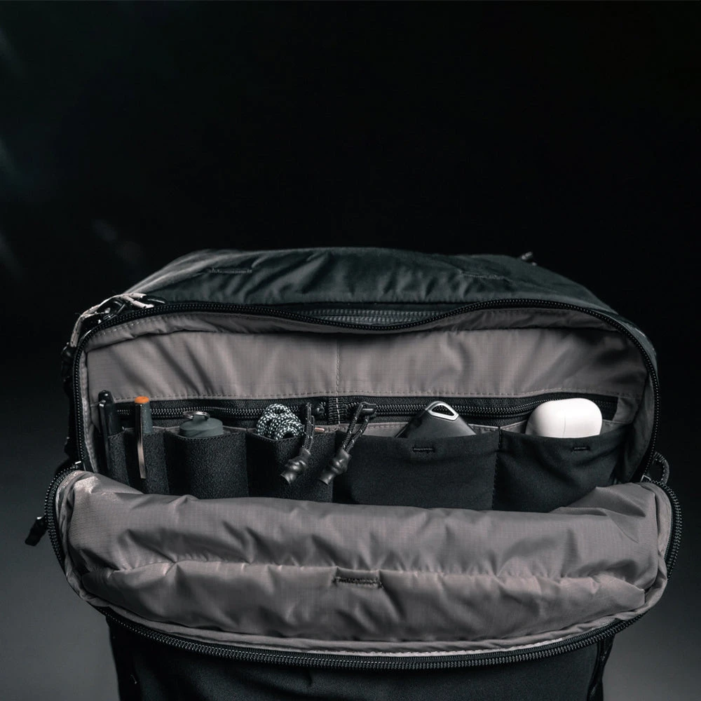 Der Rucksack besteht außerdem aus äußerst langlebigen Materialien, die seine Lebensdauer verlängern und seinen Inhalt vor widrigen Witterungsbedingungen schützen. Für maximale Verschleißfestigkeit ist es außerdem mit UHMWPE - und Ripstop -Einsätzen mit einer Behandlung zur Erhöhung der Reißfestigkeit ausgestattet. Äußerst zuverlässige und wasserdichte YKK® -Reißverschlüsse , ergänzt durch Sicherheitsschlaufen, tragen zusätzlich zum Schutz Ihrer Wertsachen bei. Zu den weiteren Merkmalen des Rucksacks gehören Kompressionsriemen, reflektierende Reißverschlusslaschen und Daisy-Chain-Schlaufen, an denen andere Gegenstände befestigt werden können.