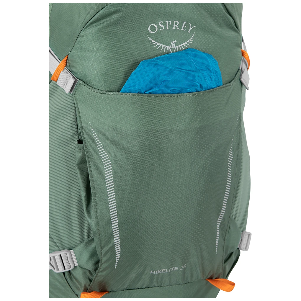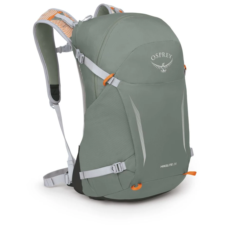 Der Wanderrucksack Hikelite 26 des amerikanischen Herstellers Osprey ist vielseitig, leistungsstark und ideal sowohl für den täglichen Gebrauch in der Stadt als auch für Ausflüge in die Natur. Der Rucksack ist aus strapazierfähigem Nylon 100D Mini Diamond Shadow-Material gefertigt. Das AirSpeed™-Rückensystem sorgt für hohe Atmungsaktivität und ganztägigen Tragekomfort. Außerdem bietet er einen abnehmbaren einfachen Hüftgurt und einen serienmäßig verstellbaren Brustgurt mit Sicherheitspfeife, eine praktische Tasche auf der Vorderseite, beispielsweise für Ersatzkleidung.