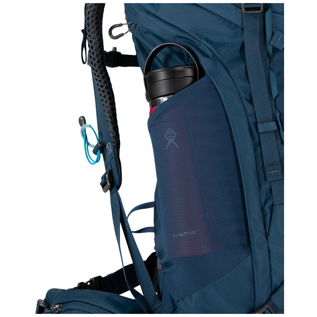 Außerdem gibt es Tragegriffe an der Oberseite, ein internes Reservoir-Fach mit Hydraclip-Befestigung, ein Schlafsackfach mit Reißverschluss und schwebender Trennwand, zwei Schlaufen für Eisgeräte, eine Stow-on-the-Go-Befestigung für Trekkingstöcke und einen seitlichen Reißverschlusszugang zum Hauptfach für eine bessere Organisation. Die Stoffe des Hauptteils und des unteren Teils sind bluesign®-zertifiziert.