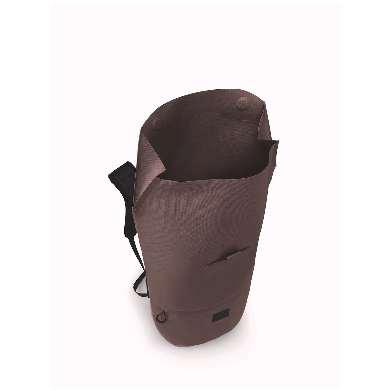 Der Zugriff auf den Rucksack erfolgt über eine große Öffnung und einen Rolldeckel, der über einen Metallhaken oder eine Klappe mit sicherem Magnetverschlussverschlossen wird. Im Inneren befindet sich eine herausnehmbare gepolsterte Hülle mit Magnetverschluss für einen Laptop bis zu 16 Zoll. Der Rucksack verfügt außerdem über eine wasserdichte Reißverschlusstasche auf der Vorderseite.