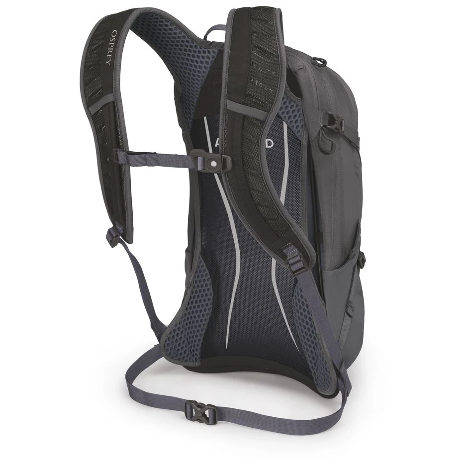 Auch den Regenmantel im Boden des Rucksacks werden Sie zu schätzen wissen. Zum Stauraum gehören eine Fronttasche Stretch-Netztasche, eine kratzfreie, heißgeprägte Reißverschlusstasche, eine Werkzeugtasche mit Reißverschluss, zwei Seitentaschen aus Stretch-Netz, zwei Kompressionsriemen an der Ober- und Unterseite und ein spezielles Fach für eine Osprey Hydraulics™ LT 2,5-Liter-Trinkflasche (separat erhältlich).
