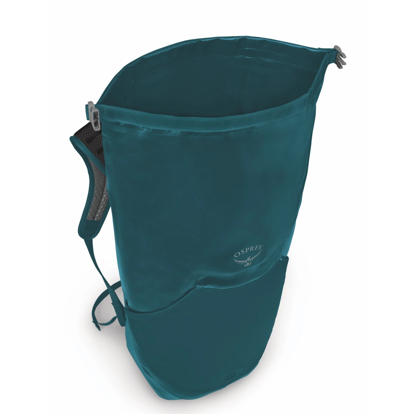 Der Zugriff auf den Rucksack erfolgt über einen Rollverschluss mit Schnalle, der dem Rucksack nach dreimaligem Rollen die IPX 6 -Zertifizierung verleiht. Der 30 Liter-Stauraum umfasst neben dem großen Hauptfach eine interne Mehrzwecktasche für einen Laptop/Dokumente, eine elastische und gewebte Jackentasche vorne und eine kleine Fronttasche mit Reißverschluss.