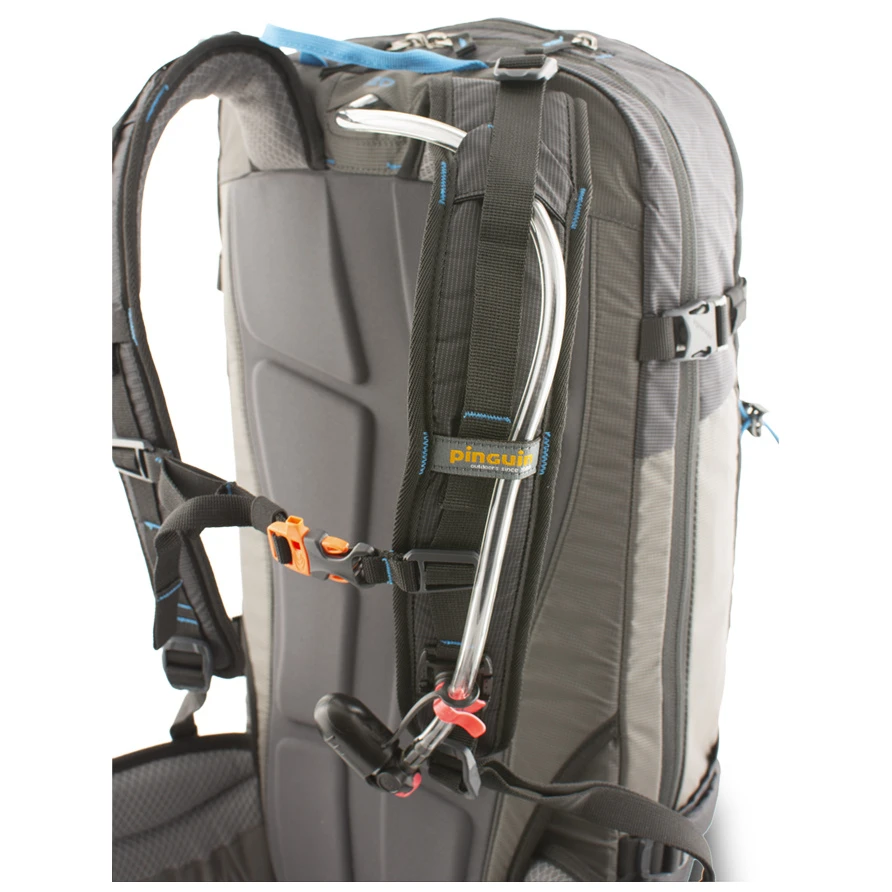 Rucksack Pinguin Ace 27 ist eine verbesserte Version des älteren Modells. Dasniedrige Profil des Rucksacks gewährleistet maximale Freiheit beim Skifahren oder Snowboarden. Der Rucksack verfügt über zwei Fächer. Die Rückenplatte kann durch einen SAS-TEC -zertifizierten Rückenprotektor (separat erhältlich) ersetzt werden, wodurch der Rucksack zu einer kompromisslosen Freeride-Waffe wird. In der Vorderkammer befindet sich eine Wertsachentasche inklusive Schlüsselschlaufe. Im Inneren der Hauptkammer befindet sich eine Trennwand, die den Wasserbeutel von der übrigen transportierten Ausrüstung trennt. Die Schultergurte verfügen über eine verstärkte Polsterung für noch mehr Tragekomfort. Das neue Snoff -Rückensystem ist wasserabweisend und Schnee bleibt nicht daran haften. Die Rückseite des Rucksacks ist mit einer abnehmbaren HDPE -Platte mit integrierter Duraluminium-Verstärkung verstärkt, die dabei hilft, das Gewicht des Rucksacks zu verteilen. Der abnehmbare Hüftgurt verfügt über eine Reißverschlusstasche und eine Schlaufe.