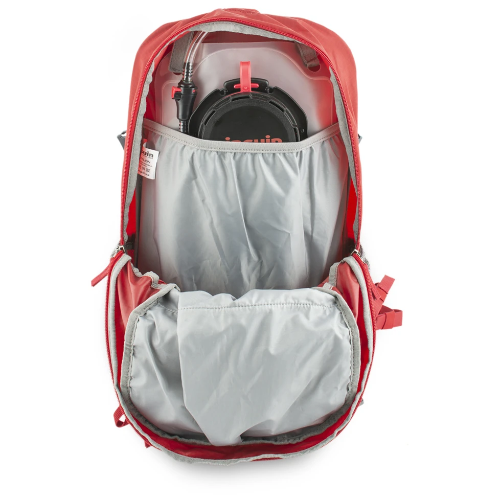 Ein Hüftgurt mit Flügeln in der Mitte, der dafür sorgt, dass der Rucksack bequem auf dem Rücken sitzt und seine Bewegung verhindert, sorgt für Komfort beim Tragen. Sie werden auch die Trennwand zu schätzen wissen, die den Wasserbeutel von der übrigen Ausrüstung im Hauptfach trennt. Eine geräumige Reißverschluss-Fronttasche mit innenliegender Reißverschlusstasche aus Netzmaterial für Wertsachen mit Schlüsselkarabiner sind weitere herausragende Features des Rucksacks.