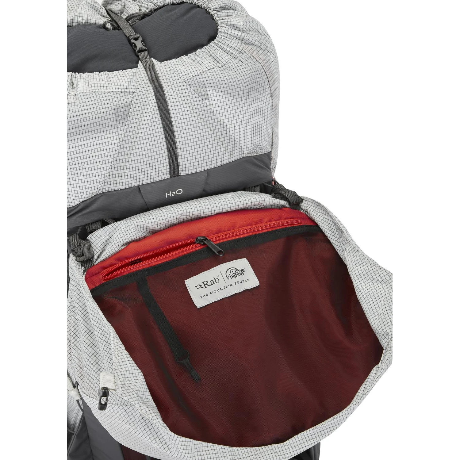 Ultraleichter Muon 50 Rucksack der Marke Rab mit speziellem TRI-FLEX™ Rückensystem, das leicht und stabil ist. Dieses Rückensystem bietet absolute Bewegungsfreiheit, da es eng am Rücken anliegt. Der große Vorteil des Rucksacks ist sein geringes Gewicht (nur 995 g) und seine Robustheit, die vor allem dem Spectra® Ripstop-Gewebezu verdanken ist, das bei gleichem Gewicht 15-mal fester ist als Stahl. Gleichzeitig ist dieser Stoff beständig gegen UV-Strahlung , was Sie in großen Höhen zu schätzen wissen werden.