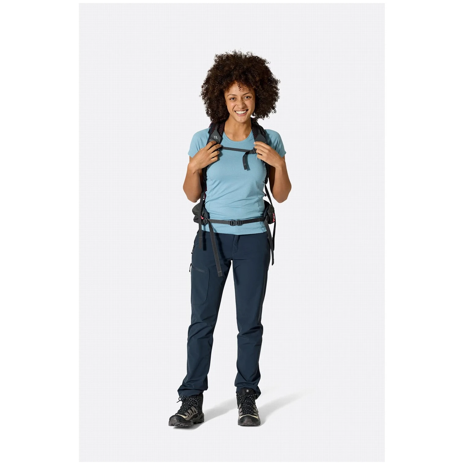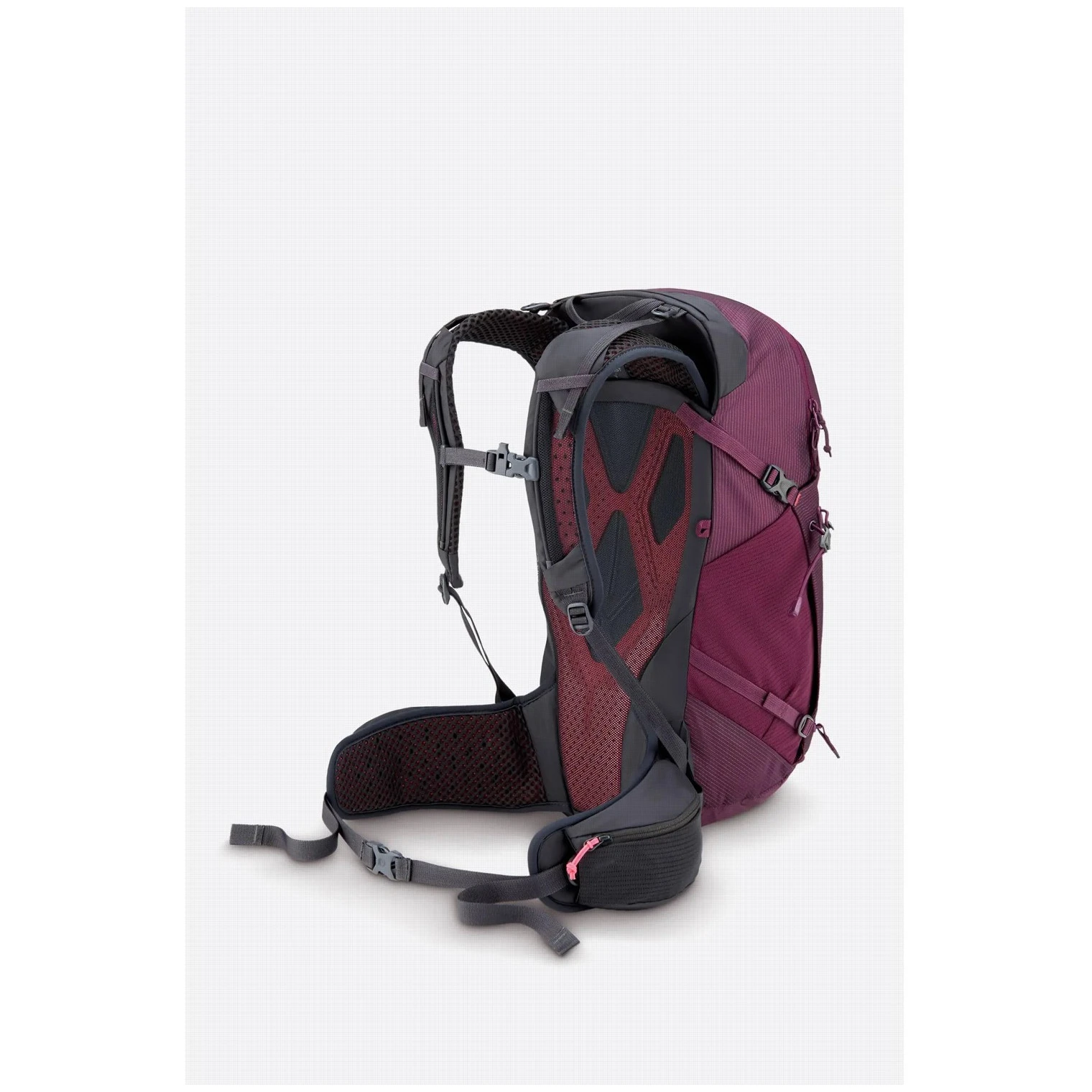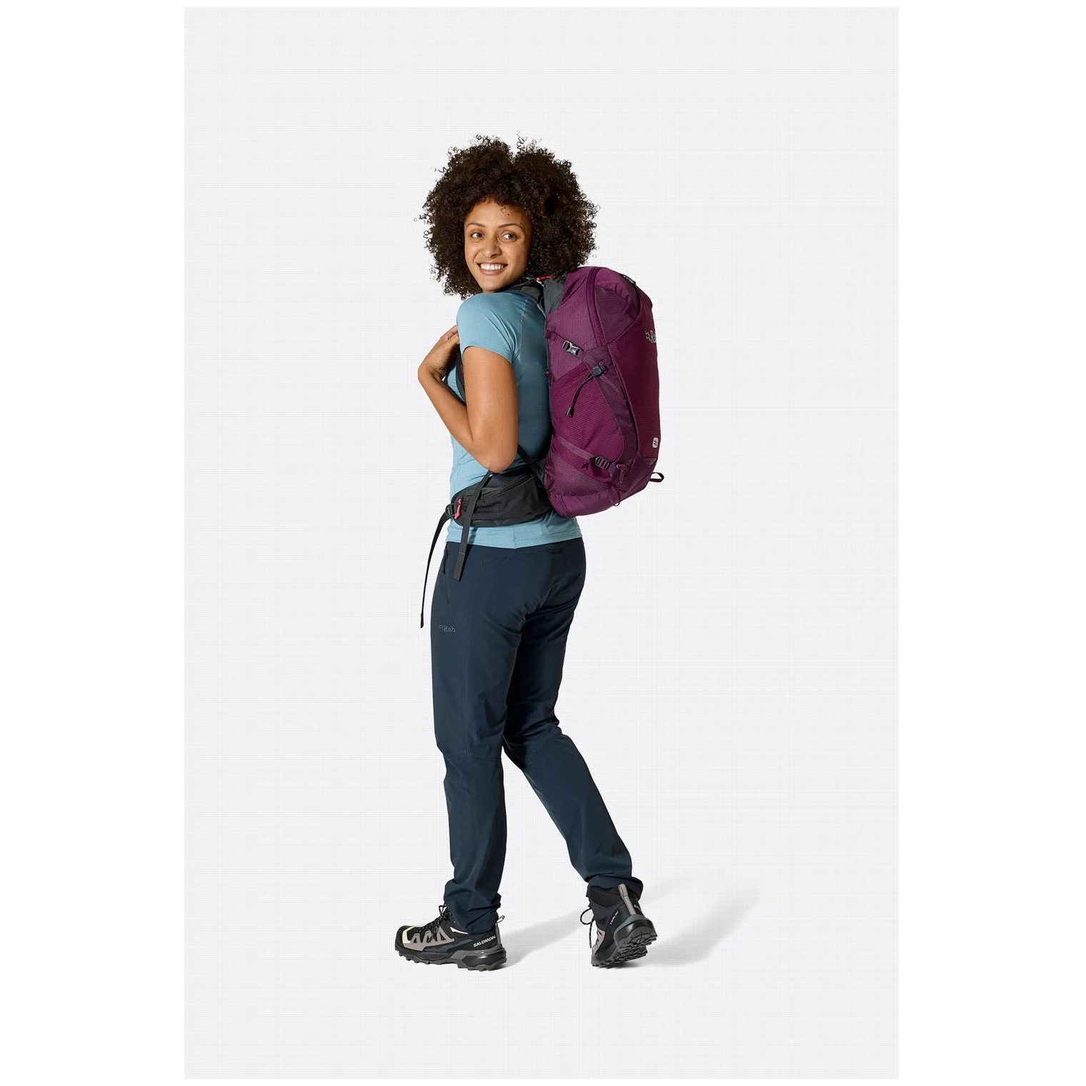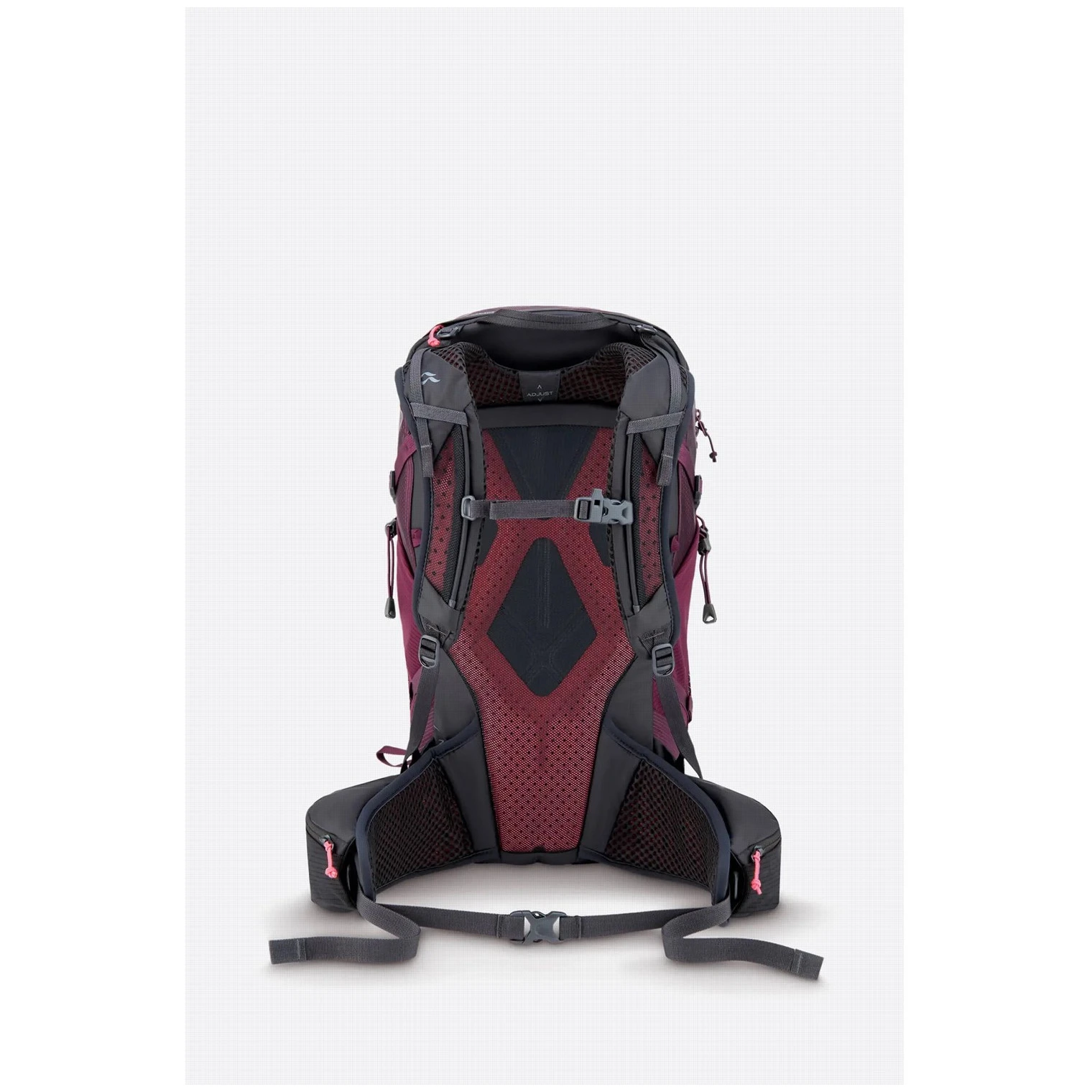 Der Damen-Rucksack Protium 25 ND der Marke Rab ist für ganztägige All-Mountain-Wanderungen in jedem Gelände konzipiert. Für maximalen Tragekomfort sorgt das elastische und flexible Rückensystem Air Contour™, das selbst bei intensiven Anstiegen für eine optimale Luftzirkulation sorgt. Die atmungsaktiven und verstellbaren Schultergurte und der Hüftgurt tragen zusätzlich zum hohen Tragekomfort bei.