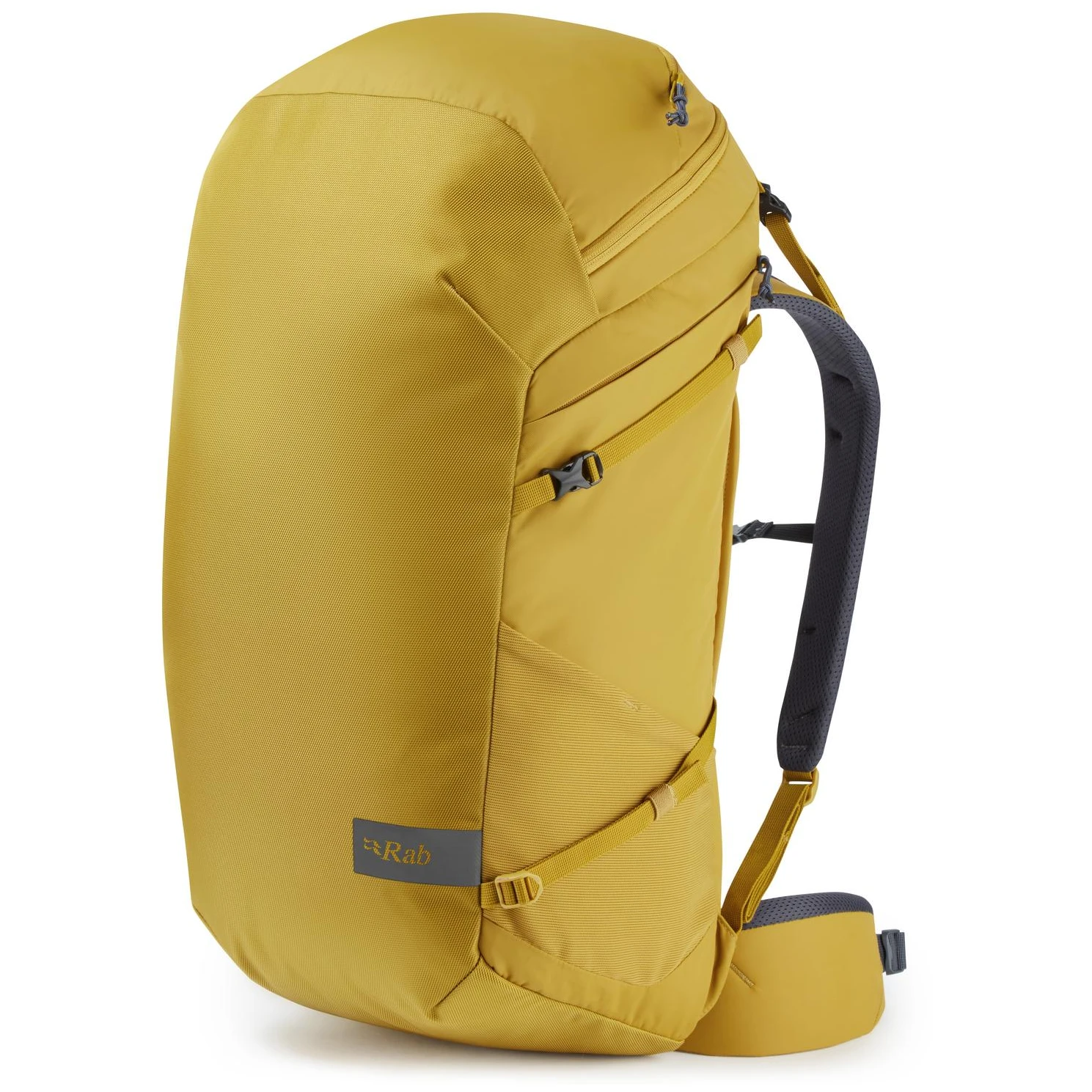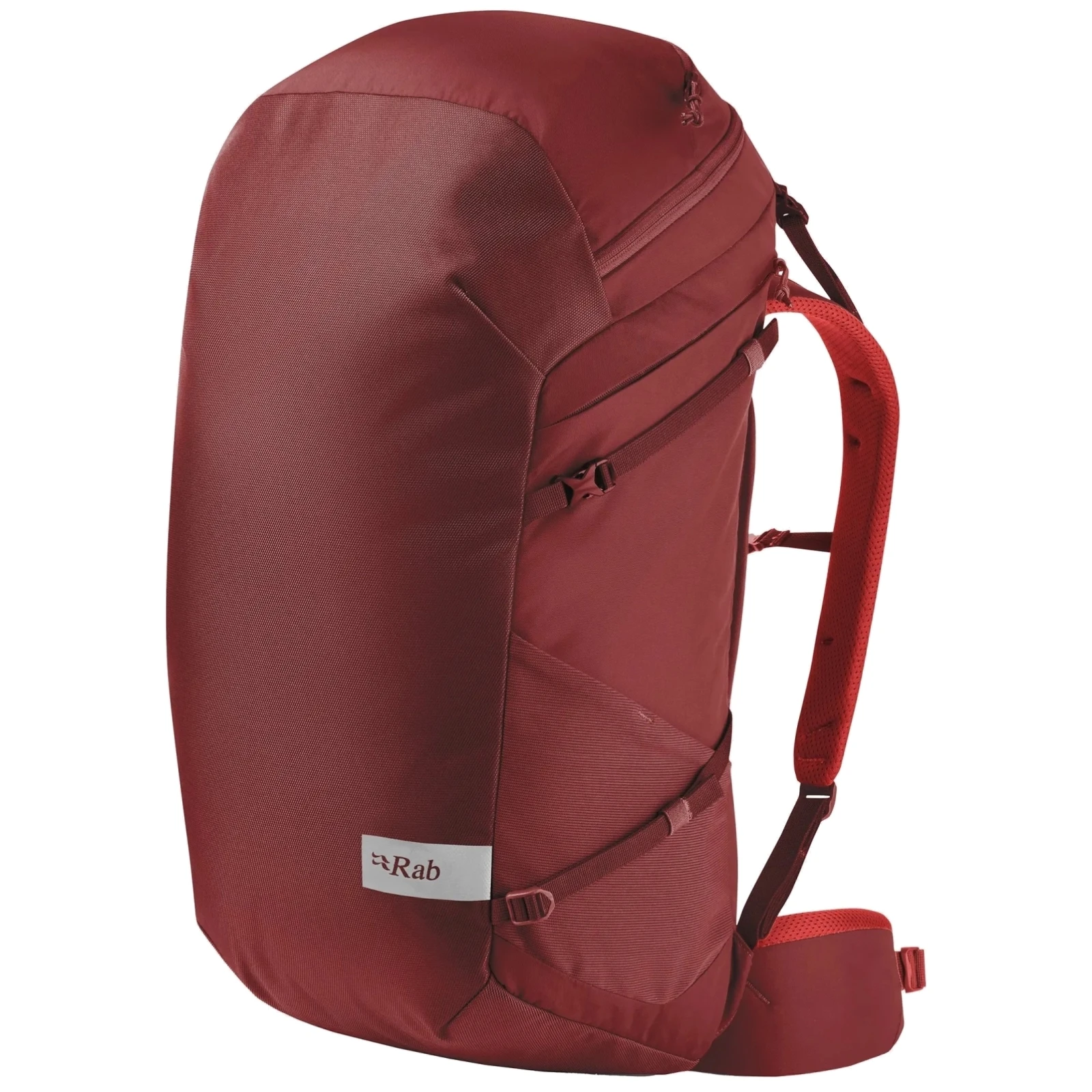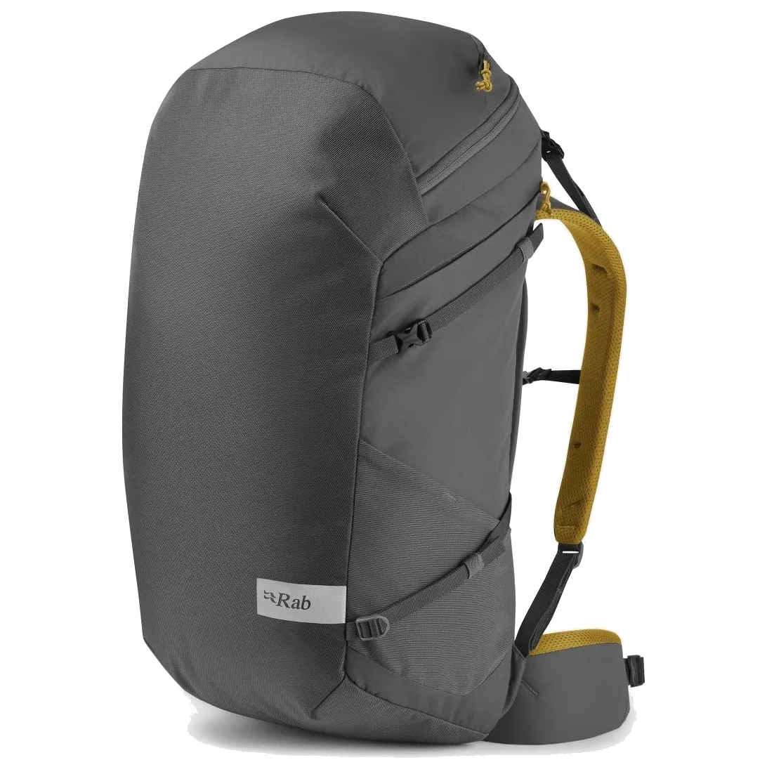 Kletterrucksack Rogue 48 der Marke Rab mit rückseitigem Reißverschlusseingang. Dank ihm können Sie in Sekundenschnelle auf Seil und Ausrüstung zugreifen. Das Tri-Flex™-Rückensystem besteht aus doppeltem Schaumstoff. Deshalb sitzt der Rucksack auch bei längeren Wanderungen in Richtung Felsen optimal auf Ihrem Rücken. Obere Kompressionsriemen mit Schlaufen helfen Ihnen, zusätzliche Kleidung oder Ausrüstung am Rucksack zu befestigen. Die seitliche Stretchtasche eignet sich beispielsweise für eine Getränkeflasche.
