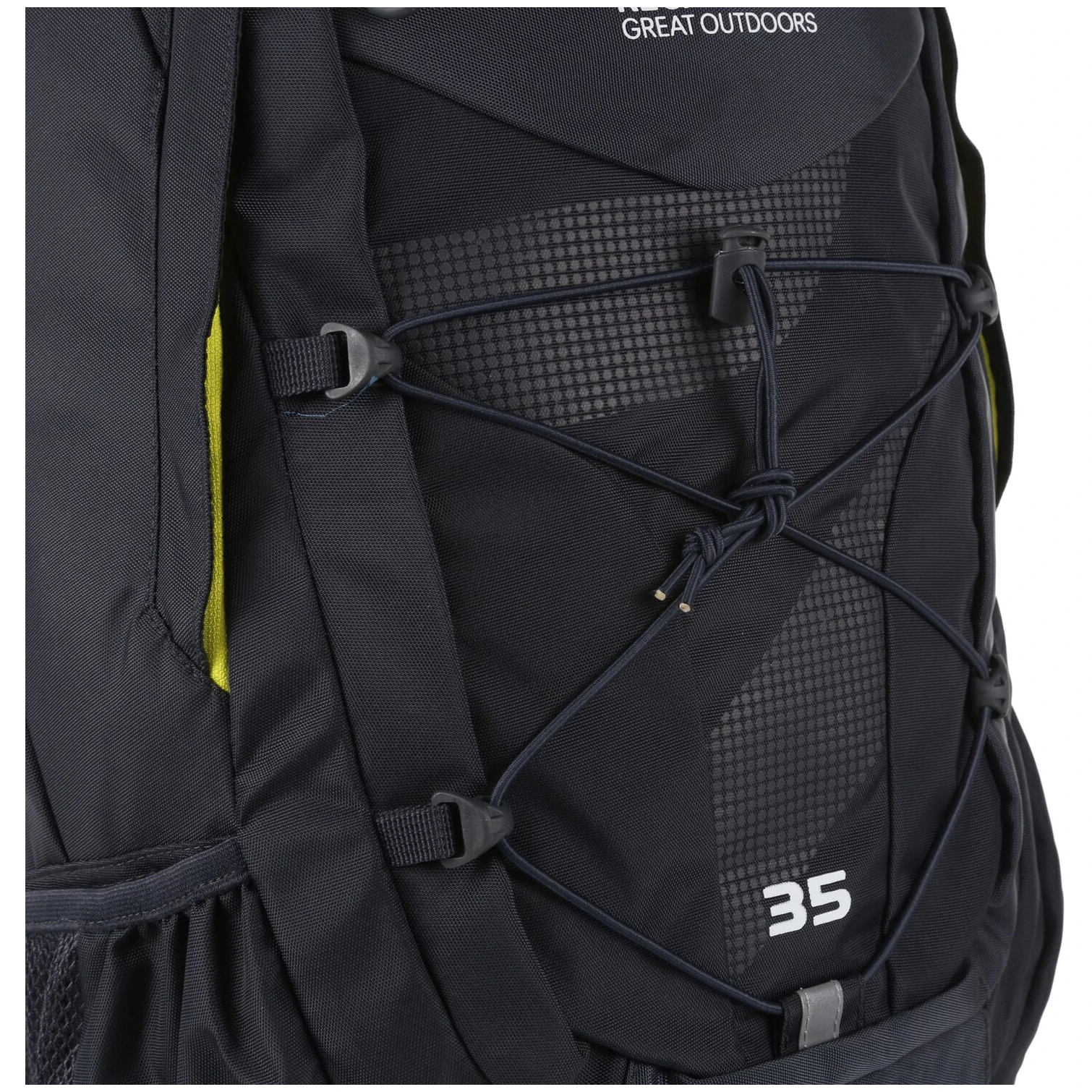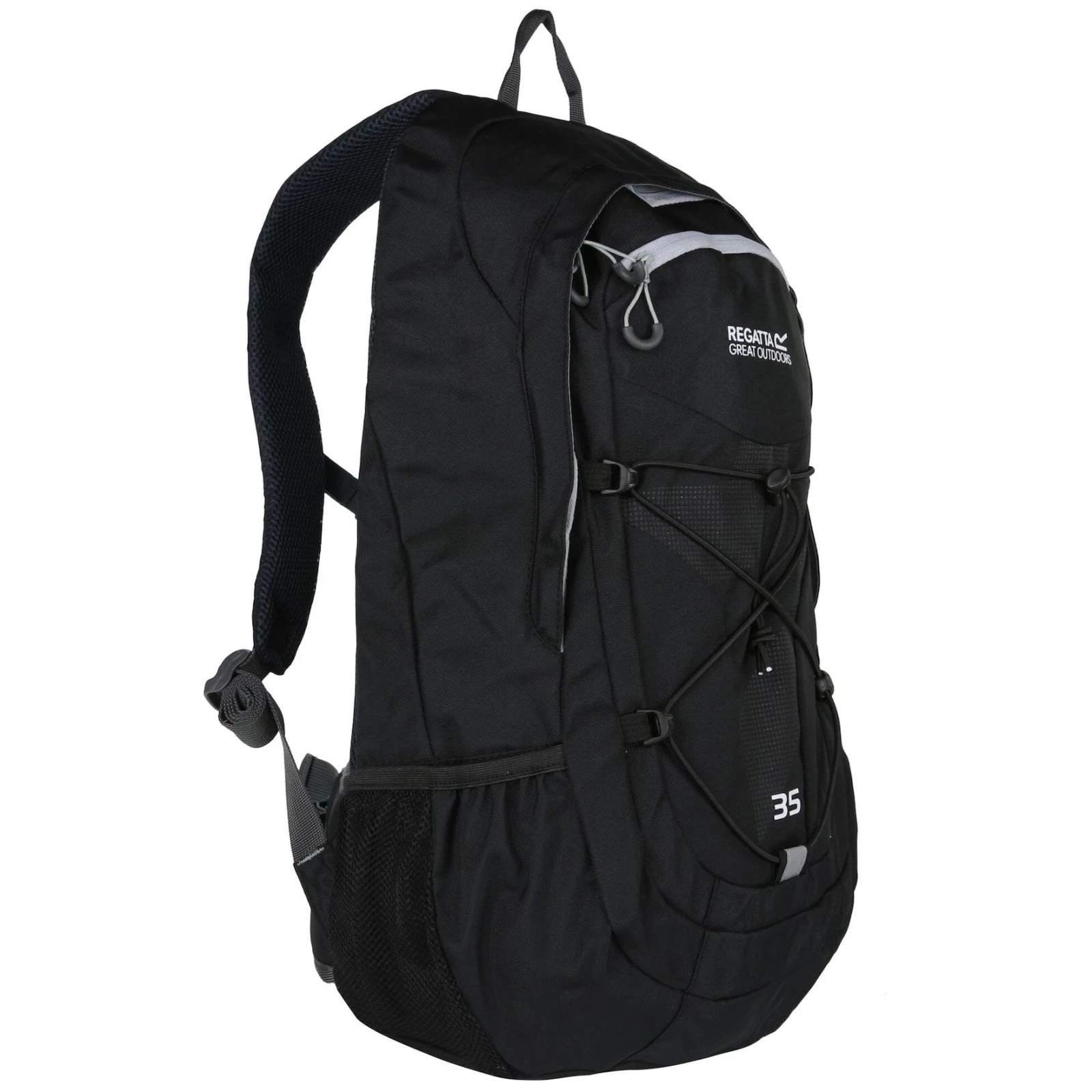 Der Wanderrucksack Atholl 35l von Regatta ist für lange Tagesausflüge und Trekkingtouren konzipiert. Dieser Einkammer-Rucksack mit 35 Litern Fassungsvermögen verfügt über ein komfortables Mesh-Air-System, viel Platz im Hauptfach und eine kleinere Fronttasche. An den Seiten des Rucksacks befinden sich zwei Netztaschen für Flaschen. Die Außenschicht des Rucksacks besteht aus 600D Polyester (zeichnet sich durch seine Strapazierfähigkeit aus).