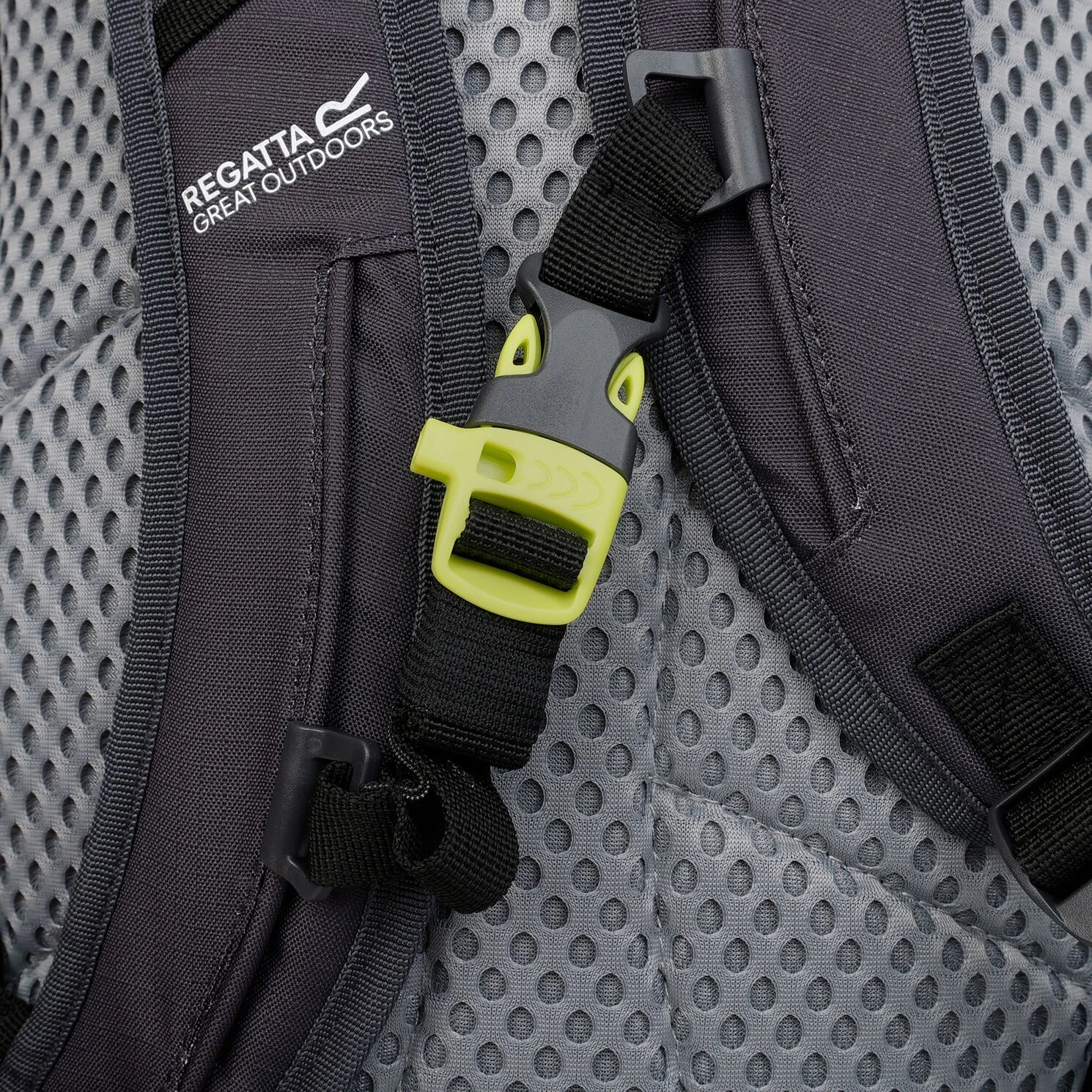 Der wasserdichte, komfortable und vielseitige Highton V2 Rucksack mit einem Volumen von 20L vom Hersteller Regatta ist der perfekte Begleiter für jeden Wanderer. Dank der gepolsterten Schultergurte und dem luftigen Mesh-Rückenteil sind Sie bequem und frisch unterwegs. Außerdem gibt es eine gepolsterte Innentasche – ideal für einen Laptop oder einen Trinkrucksack. Abgerundet wird der Rucksack durch eine Seitentasche für Trinkflasche und Snack.