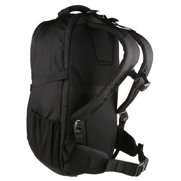 Maximalen Komfort den ganzen Tag über gewährleisten ein hoch atmungsaktives Rückensystem und Schultergurte aus Air Mesh, die die Luftzirkulation verbessern. Ein verstellbarer Brust- und Hüftgurt trägt zusätzlich zum Tragekomfort bei. Zu den weiteren Vorteilen des Rucksacks gehört viel Stauraum. Es besteht aus einer gepolsterten Innentasche für einen 17-Zoll-Laptop, einer Fronttasche mit Reißverschluss und zwei seitlichen Netztaschen. Das Hauptfach lässt sich zudem dank einer innenliegenden Reißverschlusstrennwand unterteilen, wodurch Sie beispielsweise Wäsche von Ihren restlichen Sachen trennen können. All diese Dinge bleiben dank abschließbaren Sicherheitsreißverschlüssen absolut sicher. Im Rückenbereich ist ein Gurt angebracht, mit dem sich der Rucksack am Teleskopgriff eines Koffers befestigen lässt.