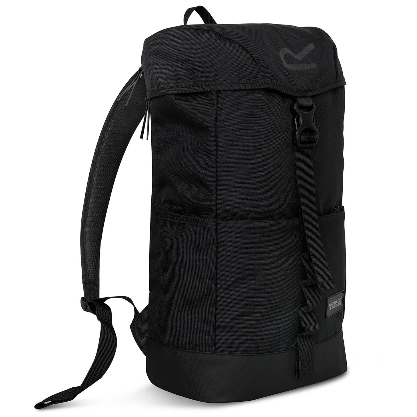 Ein komfortables Tragen ermöglichen ein gepolstertes Rückenteil und die Schultergurte. Der Rucksack besteht aus strapazierfähigem, wasserabweisendem Gewebe, das den Inhalt gut schützt und eine gepolsterte Unterseite hat. Das geräumige Hauptfach ist durch den Deckel mit Reißverschlusstasche zugänglich. Innen befindet sich eine Reißverschlusstasche über die gesamte Rucksackhöhe sowie eine versteckte Tasche. Der Rucksack fasst ein Notebook der Größe 13". Weiter gibt es eine Vordertasche mit Reißverschluss, Seitentaschen für Trinkflaschen und einen inneren Schlüsselclip. Reflektierende Elemente erhöhen die Sicherheit des Benutzers.