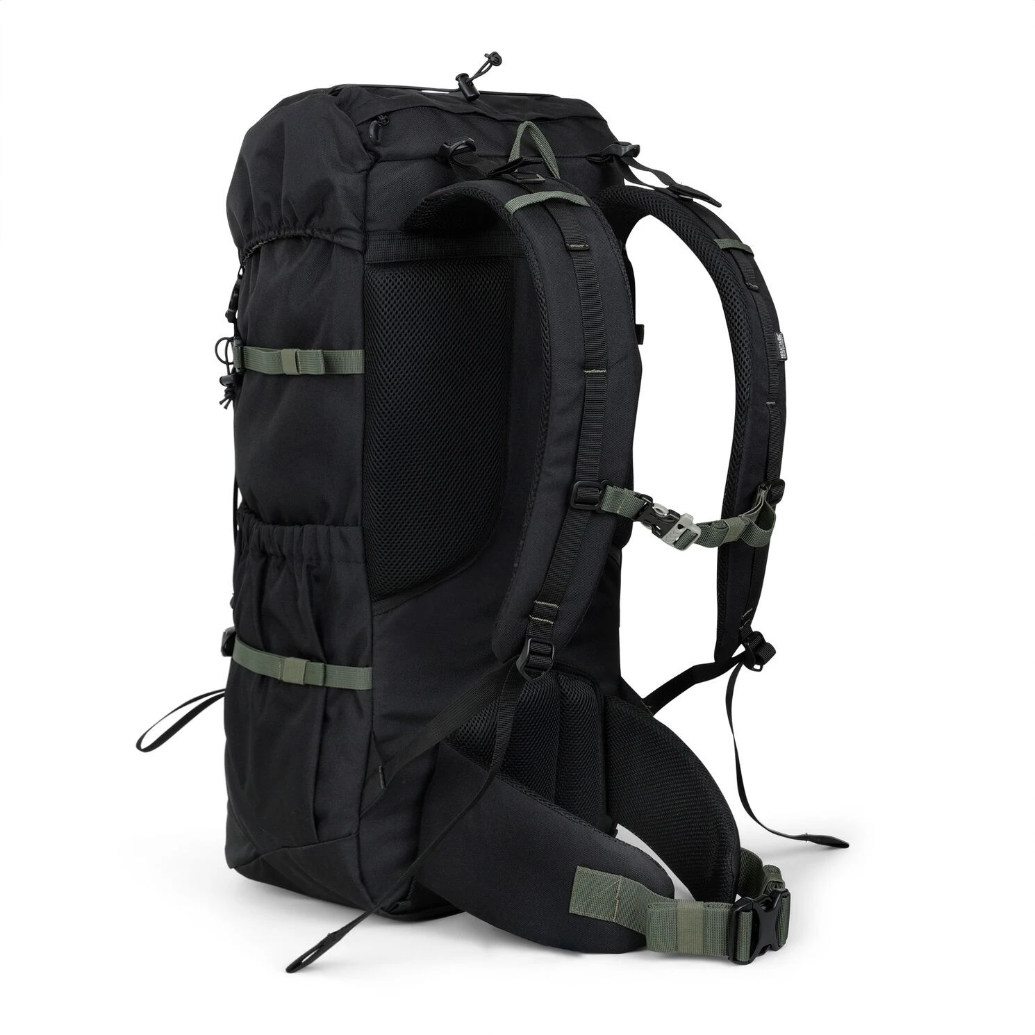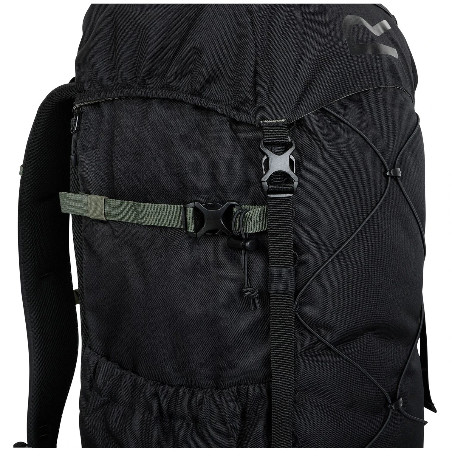 Der Rucksack ist aus strapazierfähigem, wasserabweisendem Gewebe gefertigt. Das geräumige Hauptfach ist durch den Deckel zugänglich, der eine große Reißverschlusstasche enthält. Außerdem gibt es Seitentaschen für Trinkflaschen und eine Seitentasche mit Reißverschluss, innen einen Schlüsselclip und eine Vorbereitung für eine Trinkblase. An der Unterseite befindet sich ein separates Reißverschlussfach. Ein großer Vorteil sind die leicht zu greifenden Reißverschlüsse und reflektierenden Elemente, die die Sicherheit erhöhen. An der Vorder- und Oberseite befinden sich Bungee-Schnüre, mit denen sich zusätzliche Ausrüstung befestigen lässt. Der Rucksack verfügt über seitliche Kompressionsriemen, eine abnehmbare Regenhülle, Schlaufen für Trekkingstöcke sowie einen praktischen Griff zum einfachen Anheben des Rucksacks.
