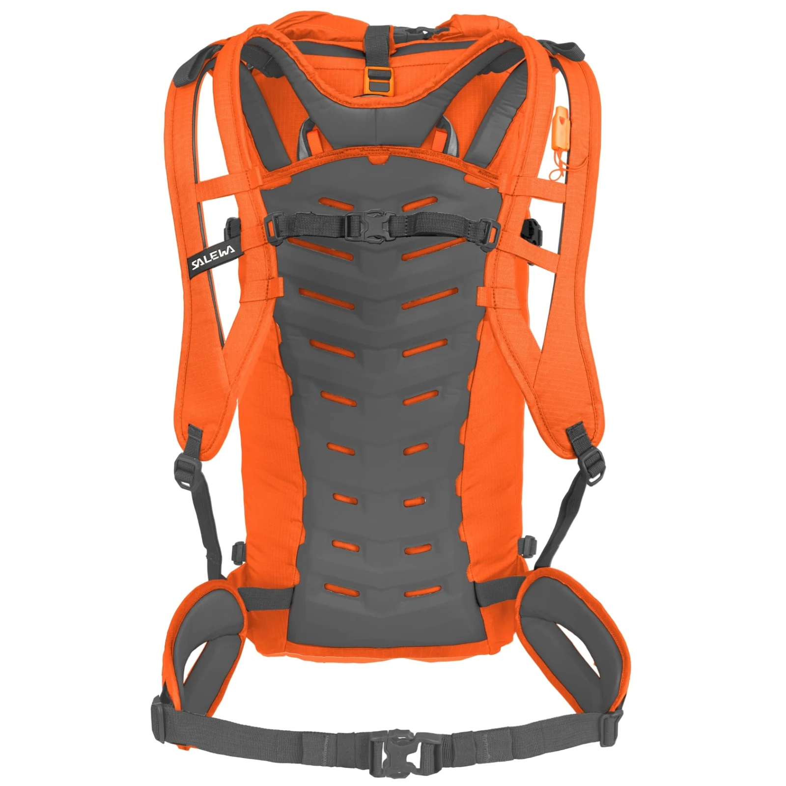 Der Ortles Wall 32 Rucksack der Marke Salewa mit einem Fassungsvermögen von 32 Litern ist eine ideale Wahl zum Wandern, alpinen Bergsteigen und Alpinklettern. Es besteht aus strapazierfähigem REGEN ROBIC®, das 60 % reißfester ist und zur Verringerung der Umweltbelastung recycelt wird. Die geteilten Schultergurte ermöglichen große Beweglichkeit, insbesondere beim Dehnen für hohe Griffe. Das atmungsaktive Dry Back Contact-Stützsystem bietet hervorragende Belüftung und hält zusammen mit dem Futter aus leistungsstarkem EVA -Schaum mit Luftkanälen Ihren Rücken trocken.