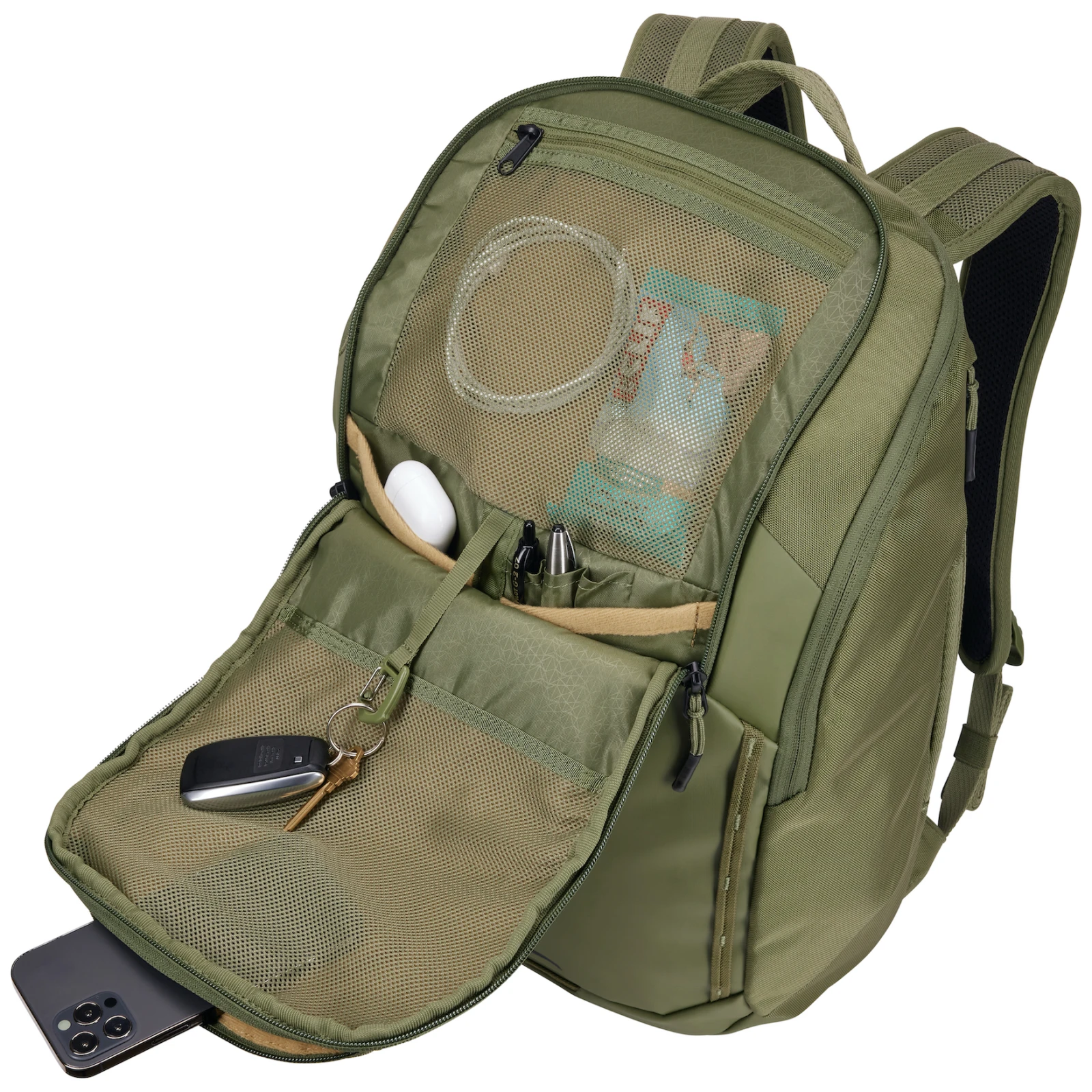 Der Chasm 26L der Marke Thule ist ein stylischer Rucksack, den du für jeden Anlass nutzen kannst, egal ob für den Alltag, den Ausflug ins Fitnessstudio oder die Erkundung neuer Orte. Der Rucksack ist daher so konstruiert, dass er grober Behandlung und widrigen Einflüssen standhält. Für perfekten Tragekomfort sorgen das gepolsterte Rückenteilund die hoch atmungsaktiven Schultergurte mit verstellbarem Brustgurt. Die Rückwand ist außerdem mit einem Durchzugsgurt ausgestattet, dank dem Sie den Rucksack am Teleskopgriff Ihres Gepäcks befestigen können.