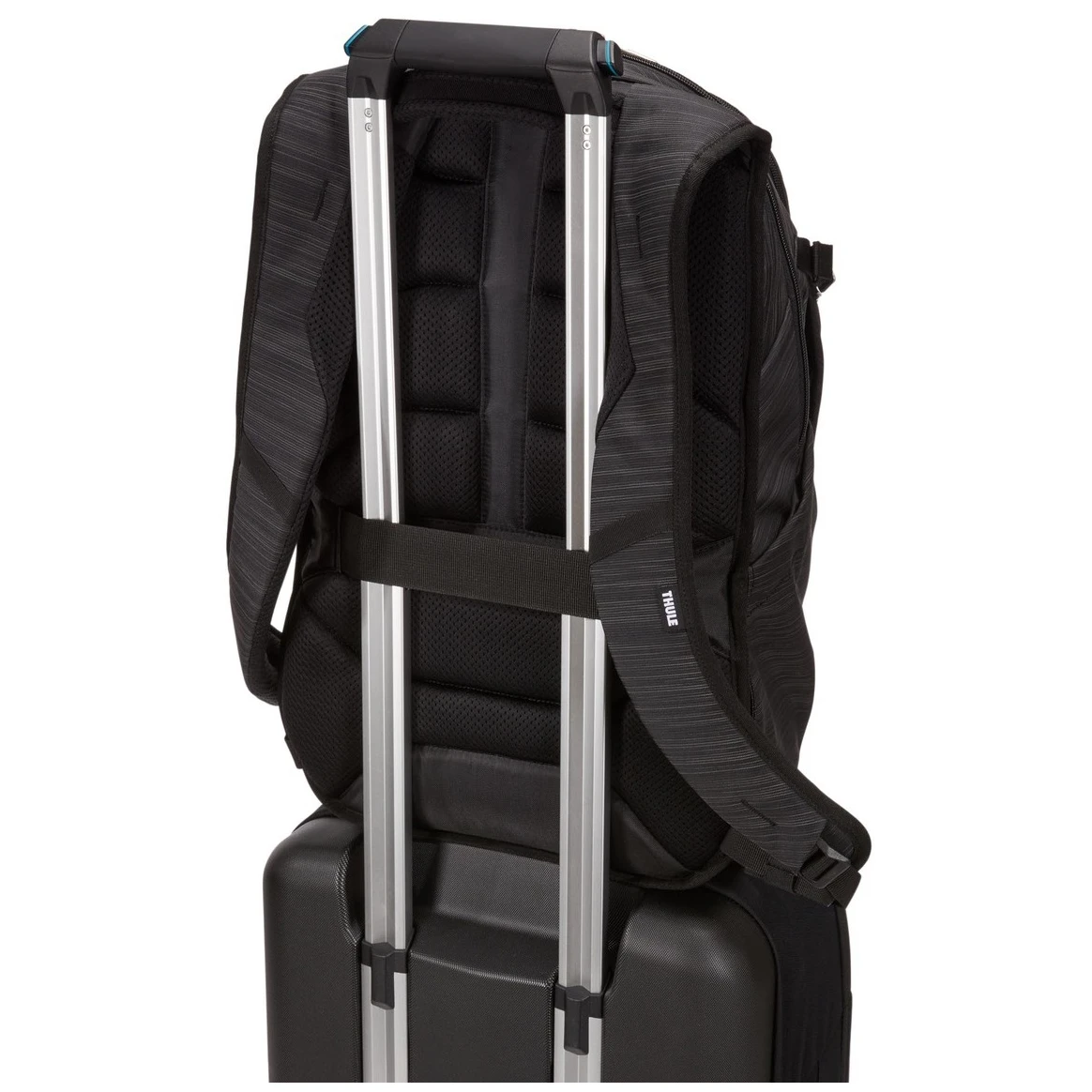 - Möglichkeit, den Rucksack an einem Koffer mit Rollen aufzuhängen