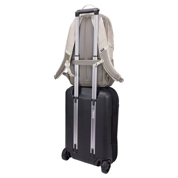 - Durch die durchgehende Rückwand können Sie den Rucksack für einfacheres Reisen an einem Rollkoffer befestigen.