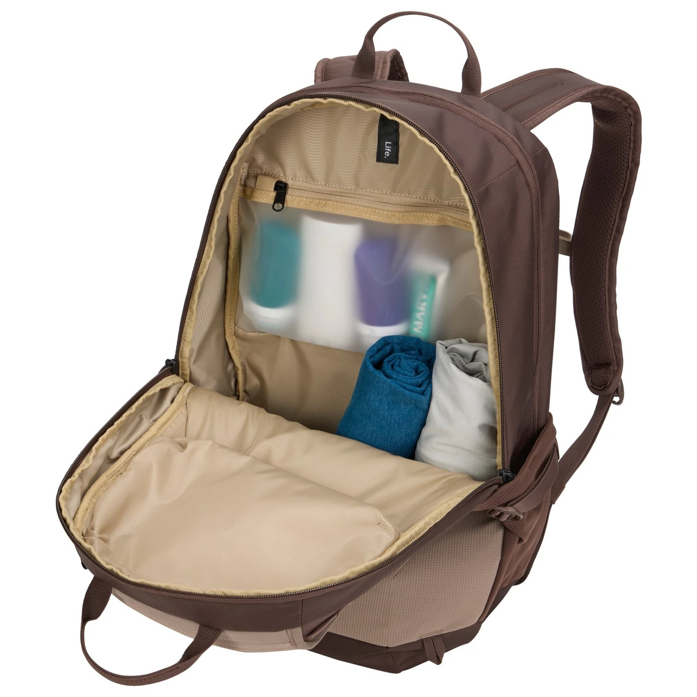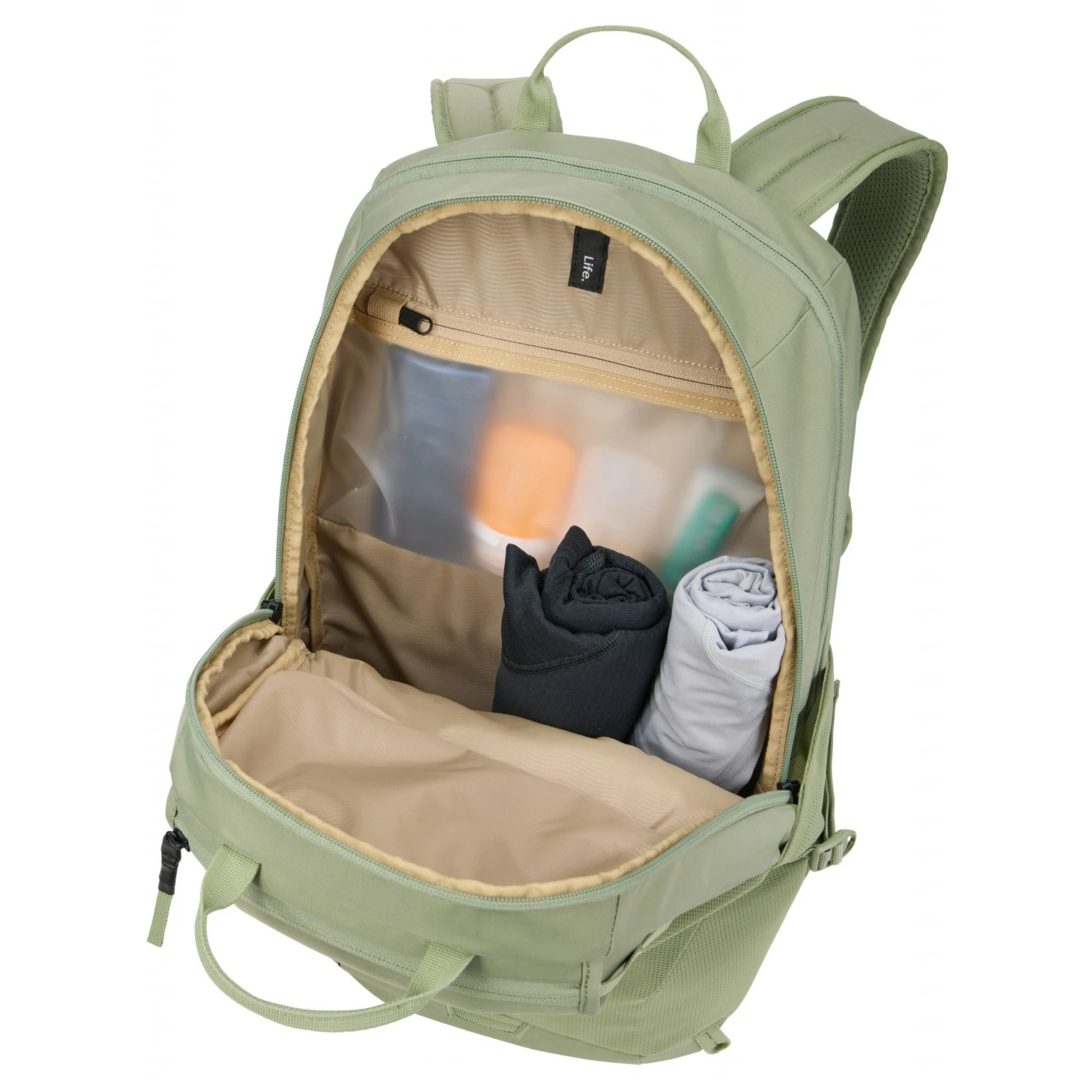 Das Mesh-Rückensystem schafft Platz zwischen Ihrem Rücken und dem Rucksack. Die Luft kann frei zirkulieren, was die Rückenbelüftung verbessert und die Schweißverdunstung beschleunigt. Der Nachteil ist eine leichte Verringerung des Innenvolumens und ein schlechterer Schwerpunkt.