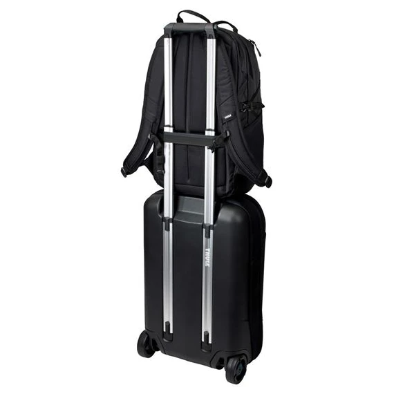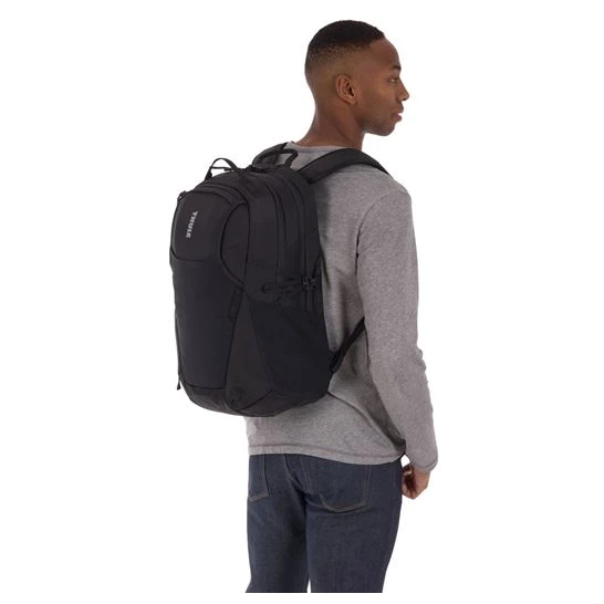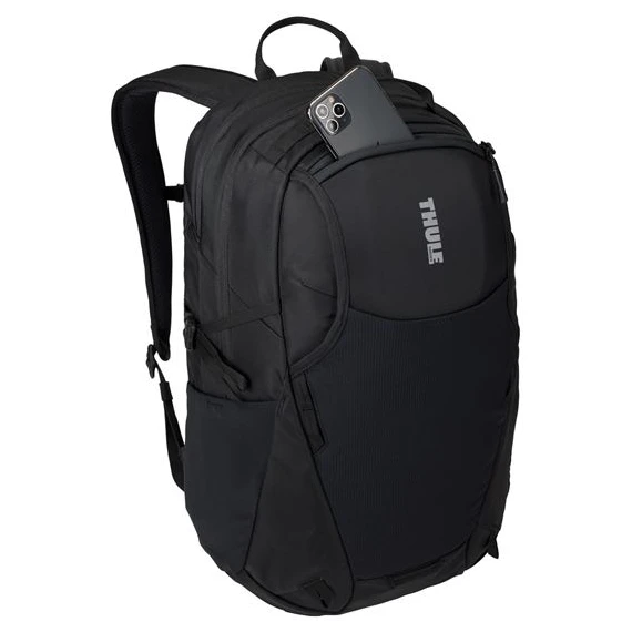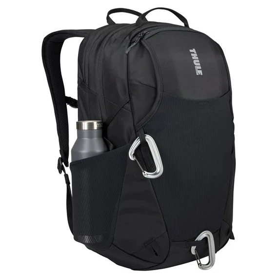 Geräumiger Rucksack EnRoute 26 L von Thule mit Aufbewahrungslösungen, die sowohl für Arbeitstage als auch für Wochenenden geeignet sind. Im geräumigen zweiten Fach können Sie Wechselkleidung, diverse Accessoires oder andere persönliche Gegenstände verstauen. Es verfügt über eine wasserdichte TPU-Tasche mit Reißverschluss, die den Inhalt und dank ihrer Blickdichtigkeit Ihre Privatsphäre schützt.Externe Seitentaschen aus Stretch-Mesh ermöglichen das schnelle Verstauen einer Trinkflasche, einer Powerbank oder eines Regenschirms. Zusätzliches Equipment können Sie problemlos an den Befestigungsösen an der Frontplatte befestigen.