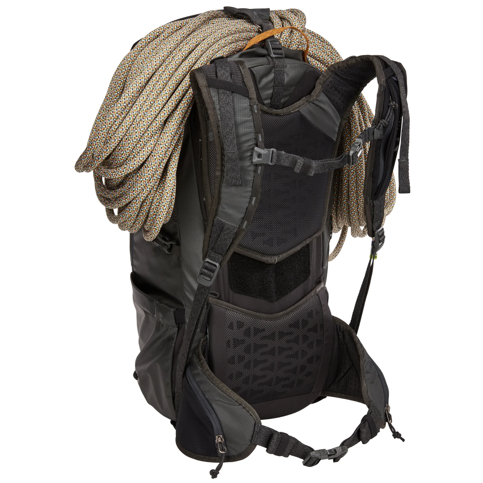 Der verstellbare, atmungsaktive Rücken sowie der komplett abnehmbare Hüft- und Brustgurt sorgen dafür, dass Sie den Rucksack problemlos an Ihre aktuellen Bedürfnisse anpassen können. Der gut zugängliche Deckel mit Schutzrand verfügt zusätzlich über einen Riemen, mit dem sich eine Jacke oder ein Seil problemlos unter dem Deckel befestigen lässt. Kletterschuhe oder andere Ausrüstung lassen sich über das Schlaufensystem einfach mit einem Karabiner am Rucksack befestigen.