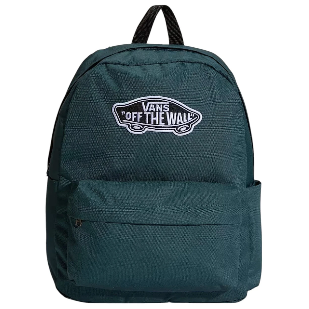 Der Old Skool Classic Rucksack Vans mit einem Fassungsvermögen von 22 Litern ist ideal für den täglichen Gebrauch, egal ob für die Schule, die Stadt oder die Freizeit. Es bietet ein geräumiges Hauptfach, eine Fronttasche mit Organizer und ein Laptopfach, das für die meisten 15-Zoll-Modelle geeignet ist. Eine praktische Seitentasche bietet Platz für eine Wasserflasche. Der Rucksack besteht aus strapazierfähigem und recyceltem Polyester, was zur Nachhaltigkeit beiträgt. Gepolsterte Schultergurte sorgen für bequemen Tragekomfort und das kultige Off the Wall-Logo auf der Vorderseite rundet den stylischen Look ab.