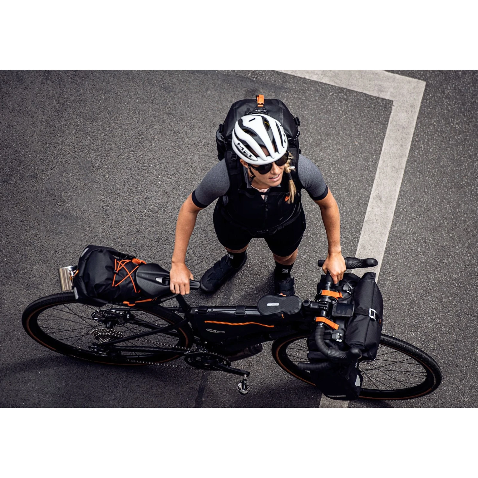 Die Seat-Pack 11L Satteltasche von Ortlieb ist dank ihres geringen Gewichts eine perfekte Wahl für Langstreckenradler, die gerne Abenteuer erleben. In der Tasche mit einem Volumen von 11L lassen sich beispielsweise Wechselkleidung und andere leichte Ausrüstungsgegenstände verstauen, die dank des wasserdichten Nylon-Materials mit Polyurethan-Beschichtung und der IP 64 -Zertifizierung absolut trocken bleiben.