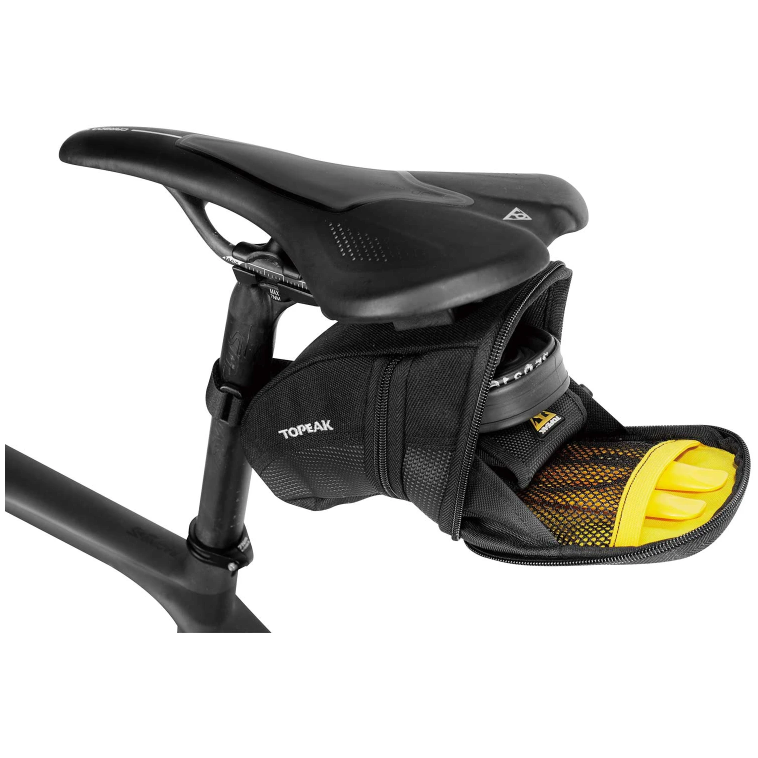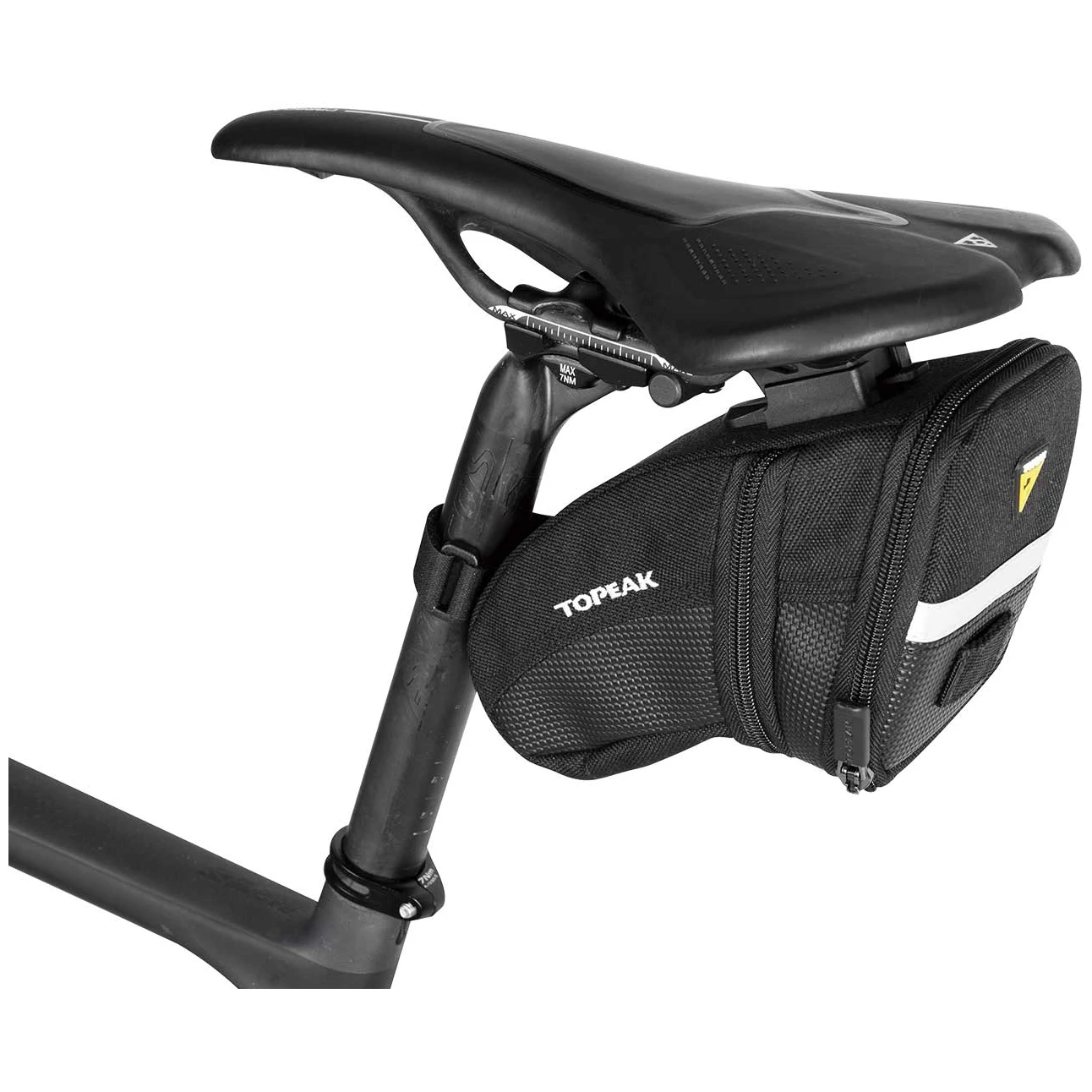 Satteltasche Topeak Aero Wedge Pack Medium bietet eine aerodynamische Form, reflektierende Elemente und ein tolles Design. Die Maße der Tasche bieten problemlos Platz für einen Ersatzschlauch oder notwendiges Fahrradwerkzeug.