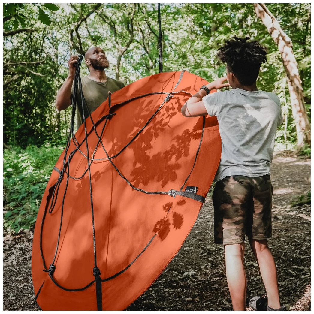 Eine erstklassige tragbare Hängematte, die ideal für die ganze Familieist. Der Hangout Pod hängt einfach an einem sicheren Ast.Genießen Sie gemeinsam mit ihnen oder Ihren Freunden das Gefühl, in aller Ruhe knapp über dem Boden zu schweben. Es wird in einer praktischen Tasche geliefert, sodass es leicht transportiert und getragen werden kann.