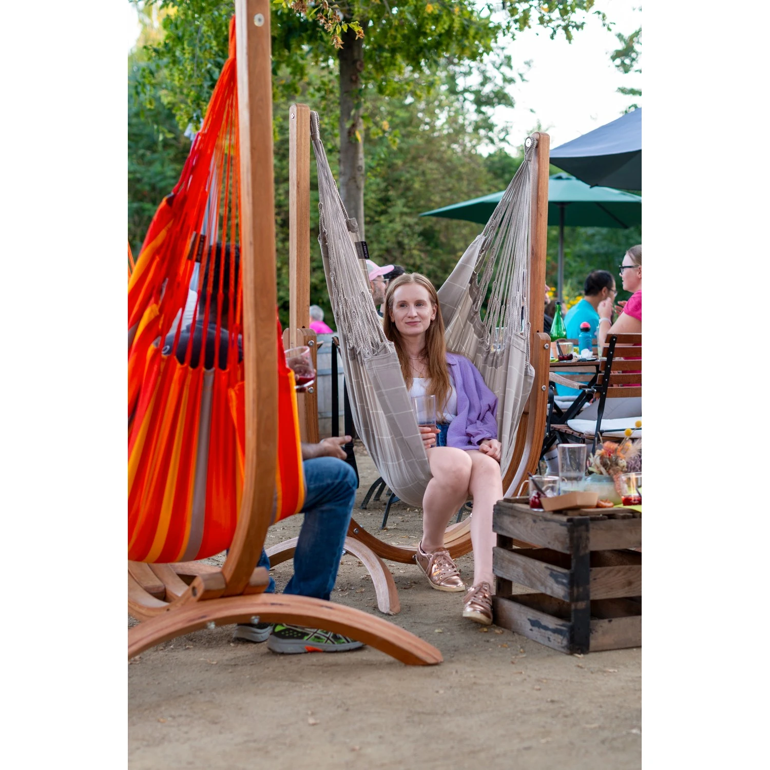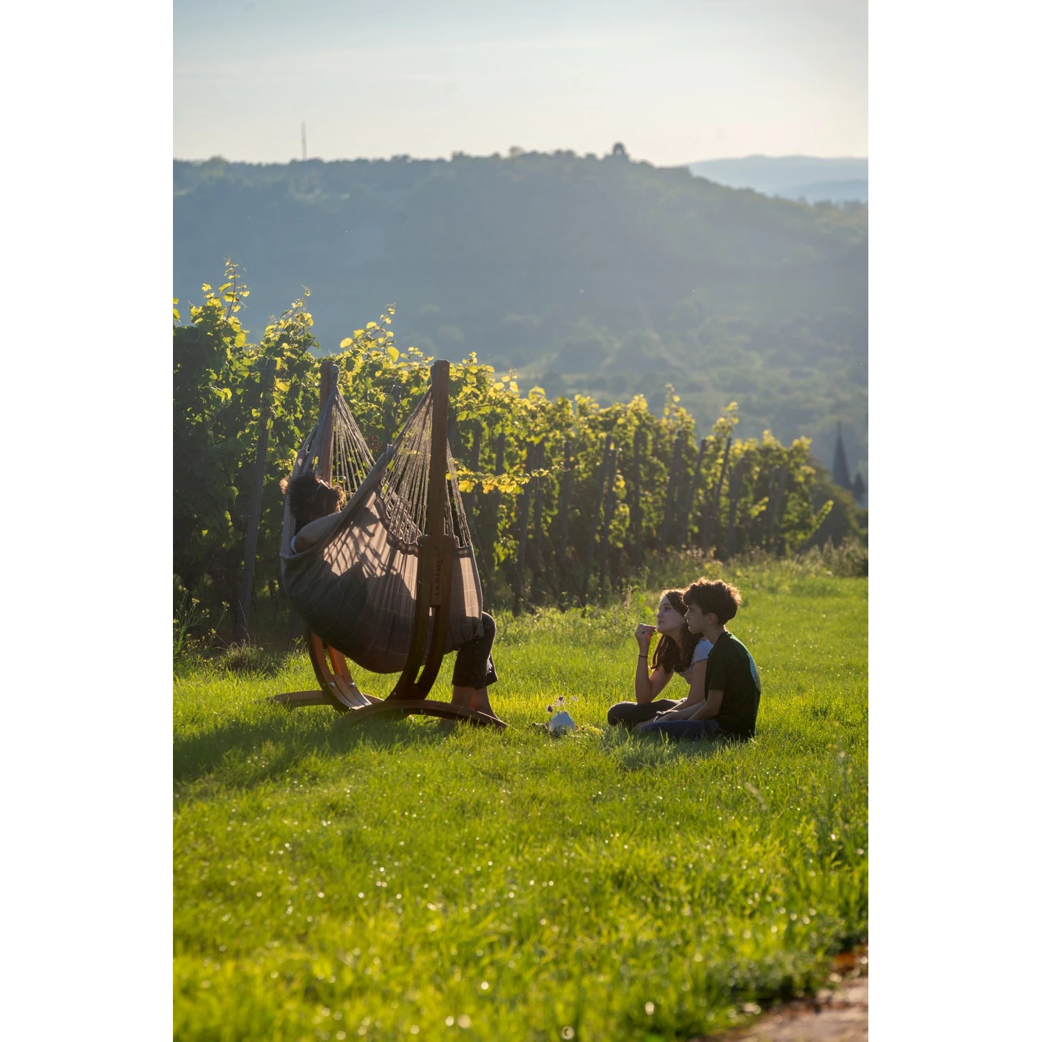 Der geräumige Outdoor-Hängesessel Udine Outdoor der Marke La Siesta bietet Ihnen eine sanfte Umarmung, die Sie augenblicklich in einen Zustand wohliger Entspannung versetzt. Sitzen und Liegen. Man kann sich schon jetzt vorstellen, wie man an einem lauen Sommerabend darin in die wohlige Behaglichkeit des Sommers versinkt. Sie können persönliche und globale Sorgen hinter sich lassen, denn Hängesitz und -ständer sind aus nachhaltigen Materialien hergestellt und mit hoher handwerklicher Qualität verarbeitet, sodass sie Ihnen viele Jahre unbeschwerter Entspannung im traditionellen kolumbianischen Stil ermöglichen.