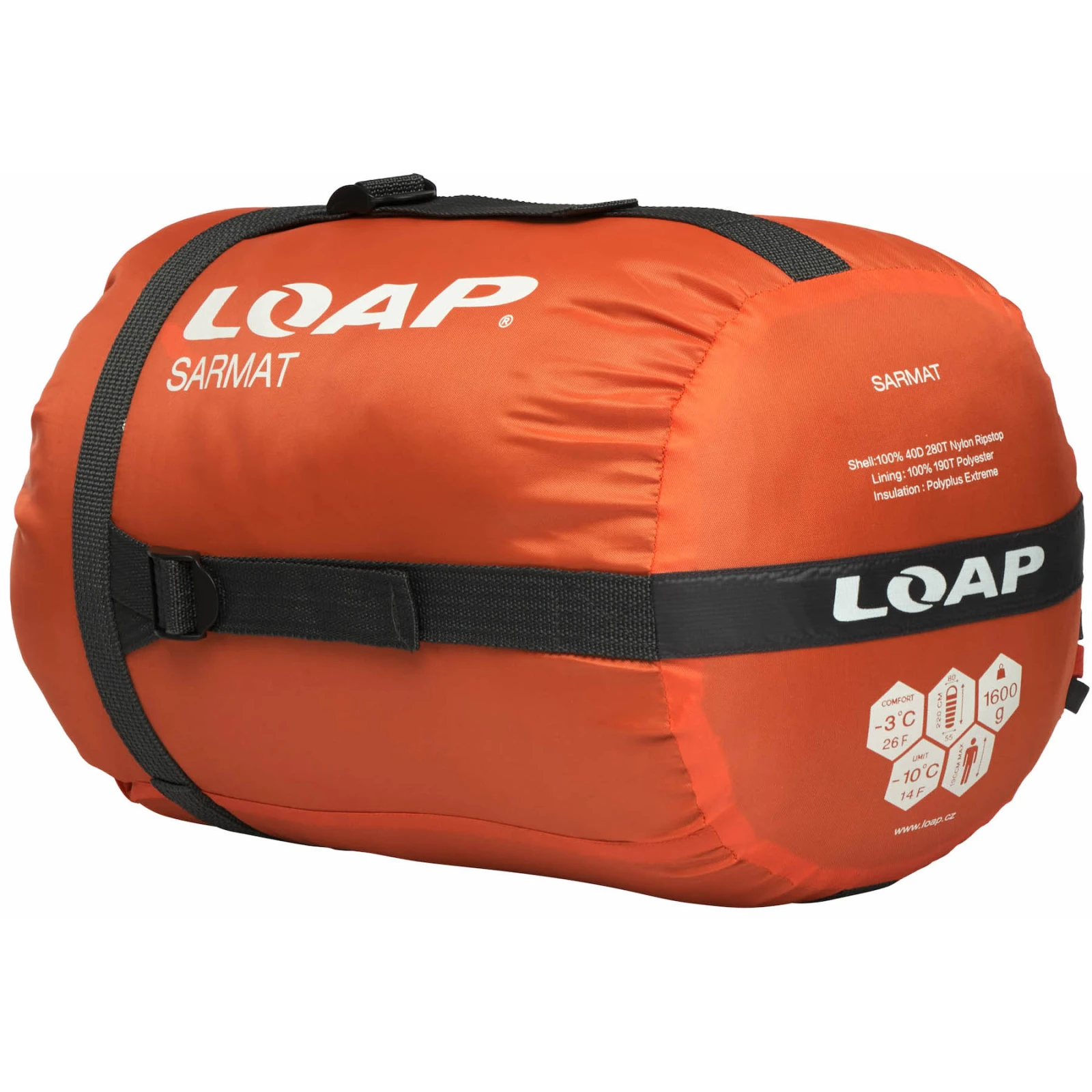 Der Drei-Jahreszeiten-Schlafsack Sarmat der Marke Loap ist eine ideale Wahl auch für anspruchsvollere Bedingungen, bei denen er Sie zuverlässig warm hält. Der Einsatz ist von Frühjahr bis Herbst möglich. Für einen hohen Wärmekomfort sorgt die synthetische Isolierung PolyPlus Extreme, die über ein hervorragendes Gewicht-Wärme-Verhältnis verfügt. Darüber hinaus wärmt es auch bei nassen Fasern und trocknet bis zu dreimal schneller als Federn. Die Isolierung ist in einer zweilagigen Sandwichkonstruktion ausgeführt, wodurch Wärmeverluste vermieden werden.